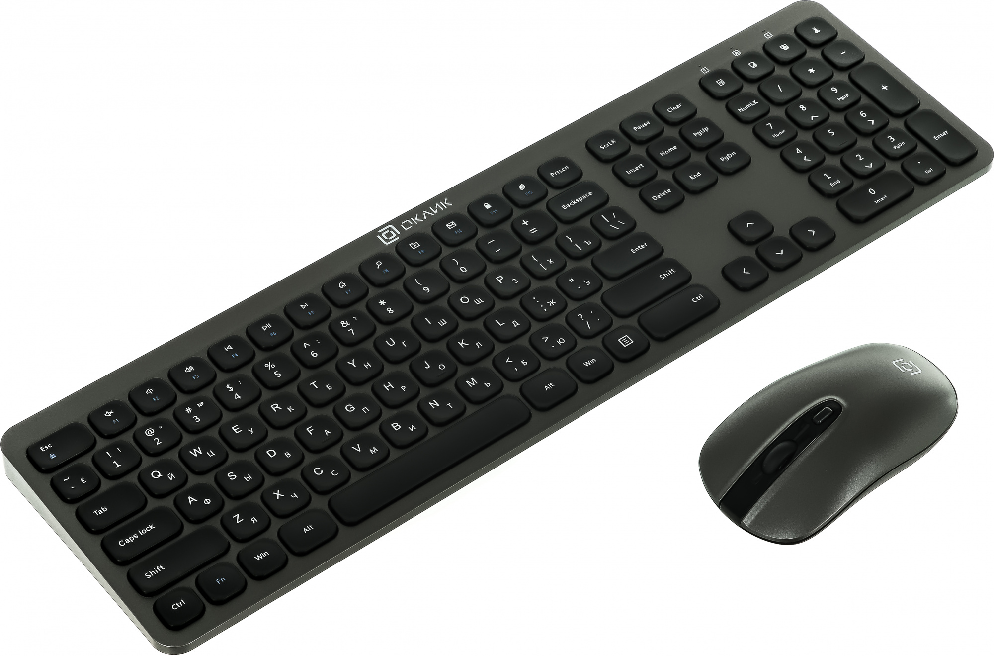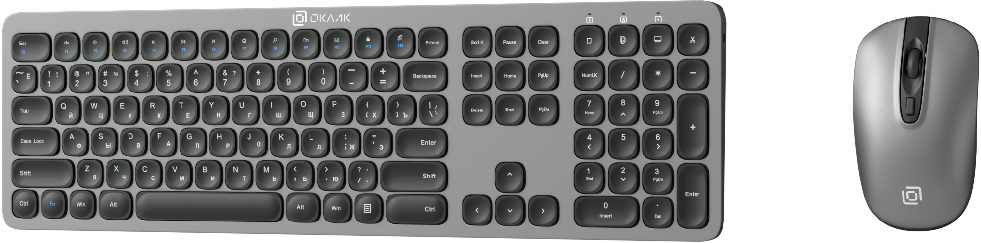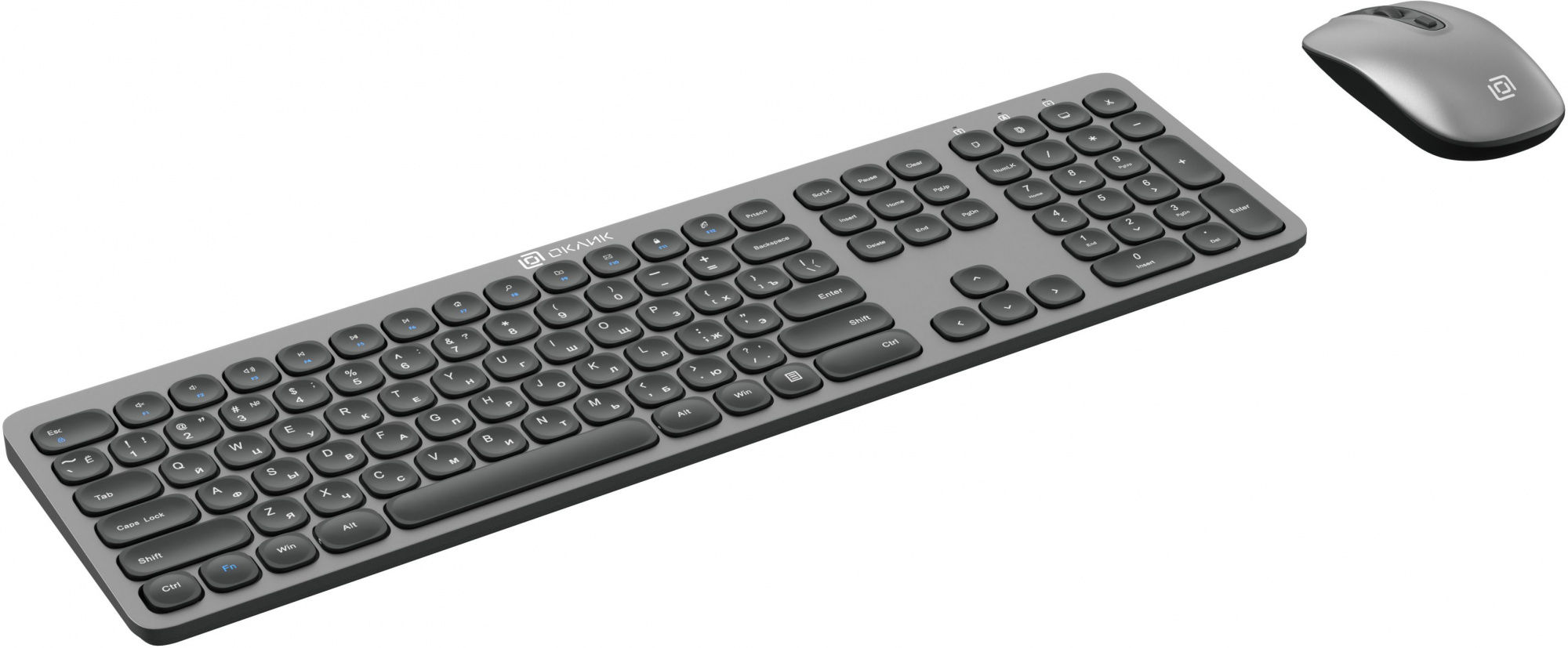 Комплект клавиатура/мышь OKLICK, Беспроводной, серый, 1488402