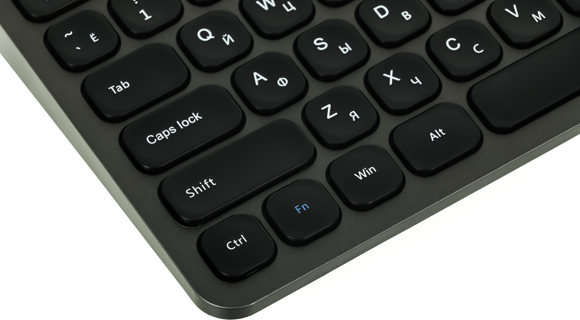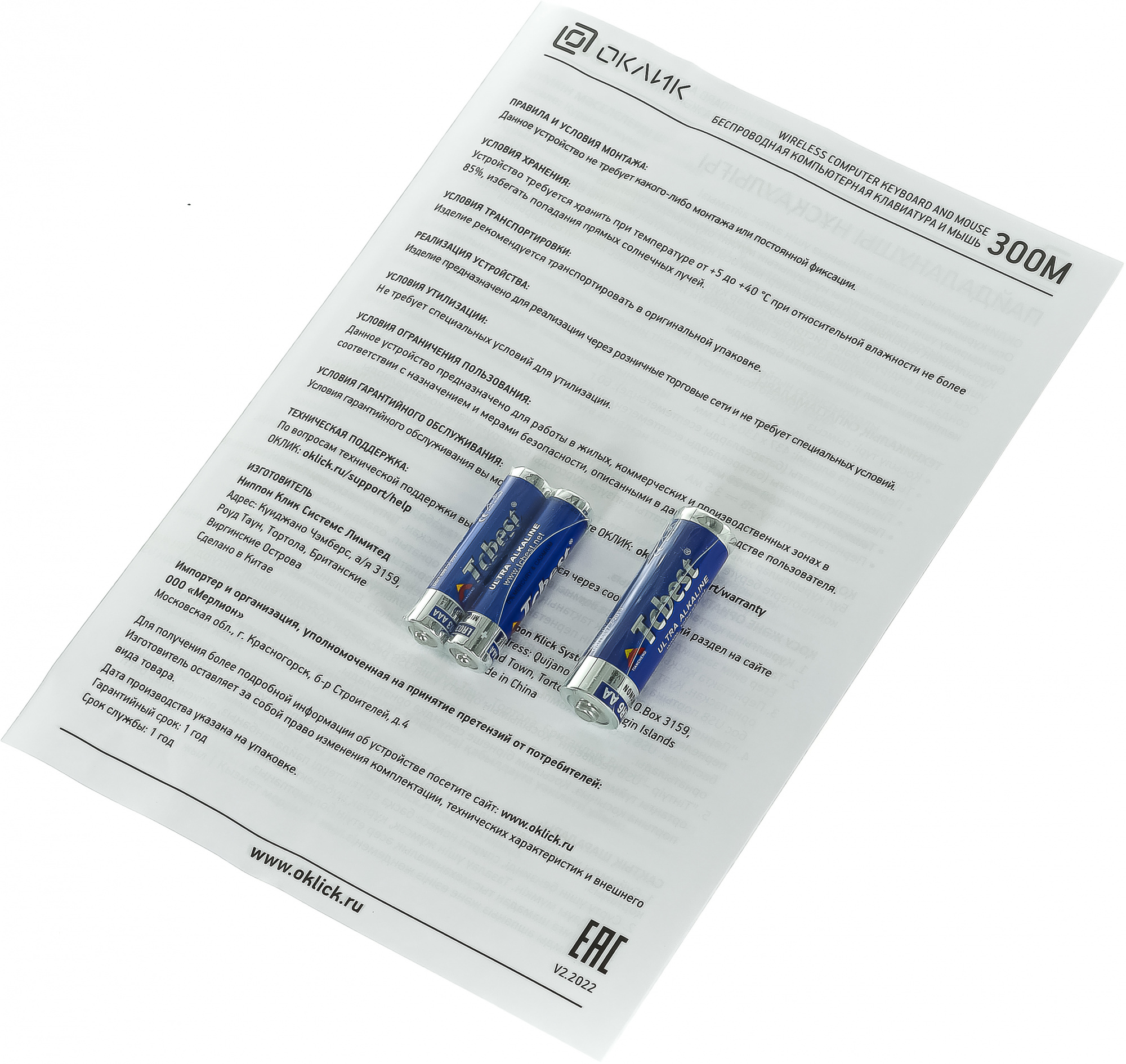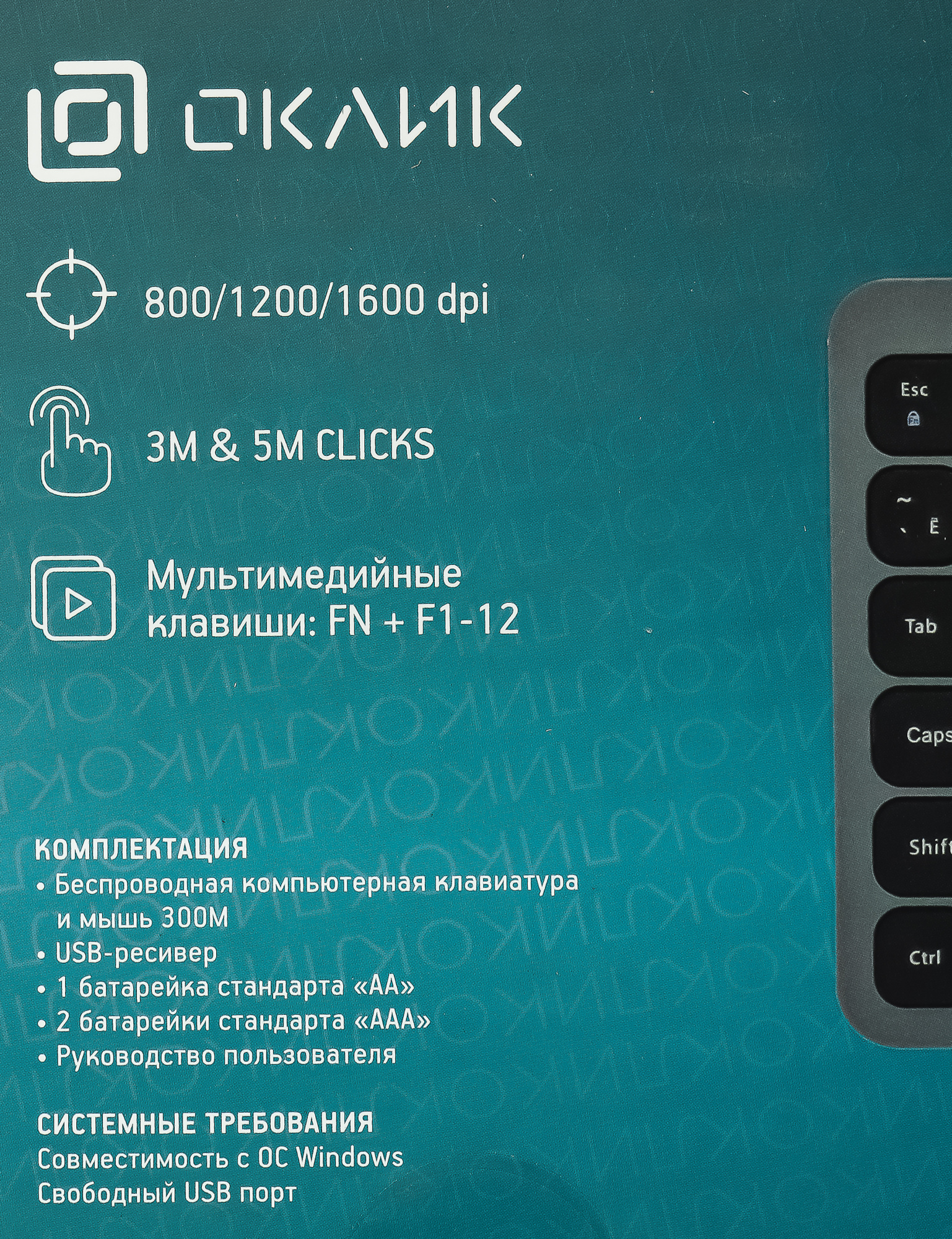 Мембранная клавиатура стандартного размера и мышка с оптическим сенсором. Провод USB, никаких батареек, всё просто. Подходит для дома/офиса.