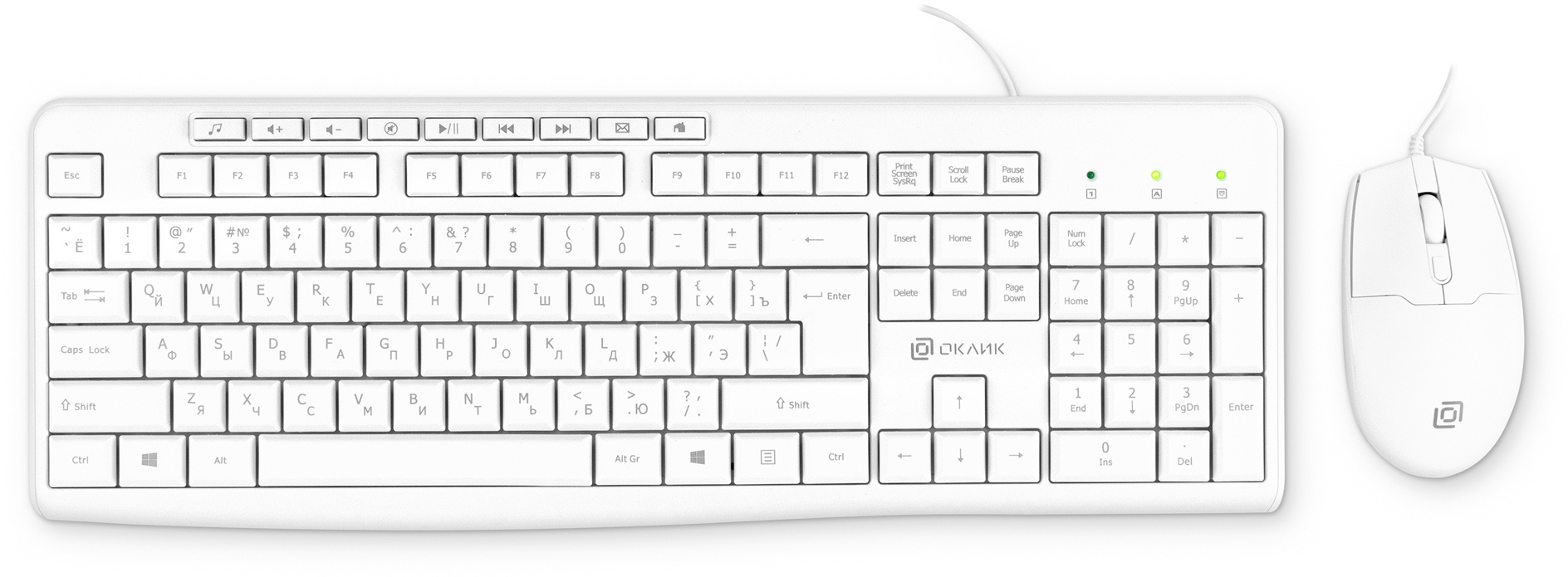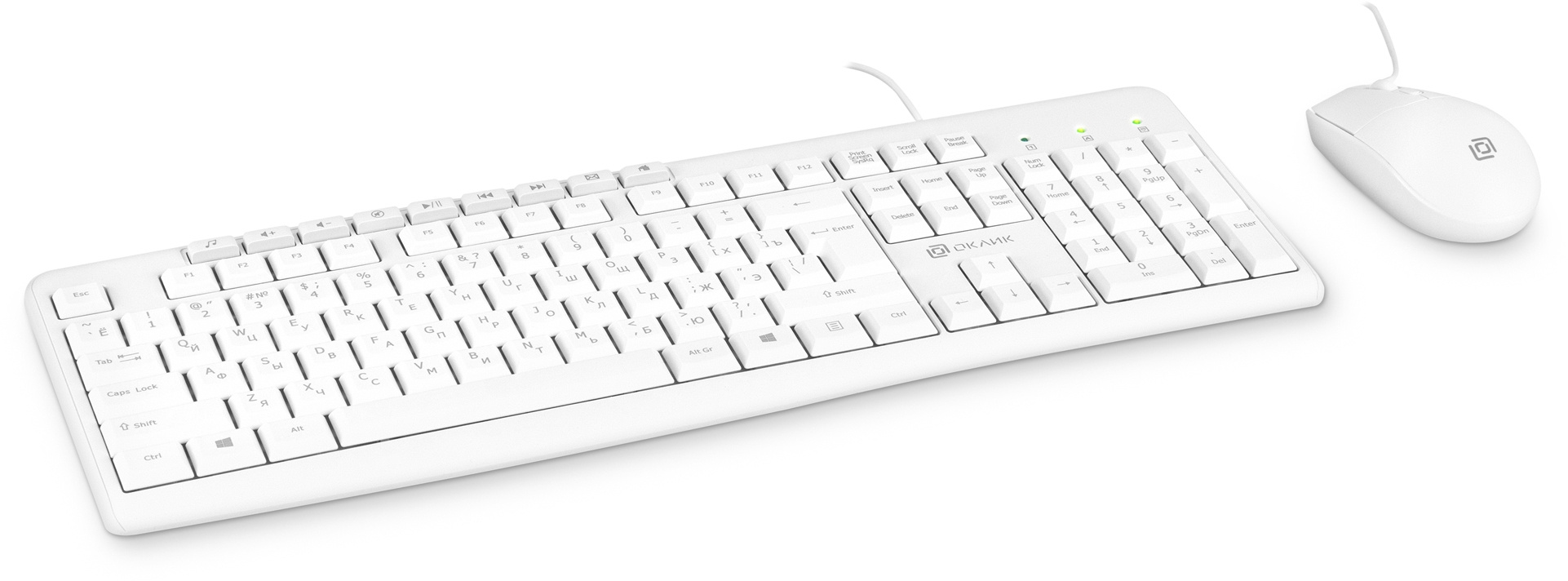 Комплект клавиатура/мышь OKLICK, Проводной, белый, 1875257