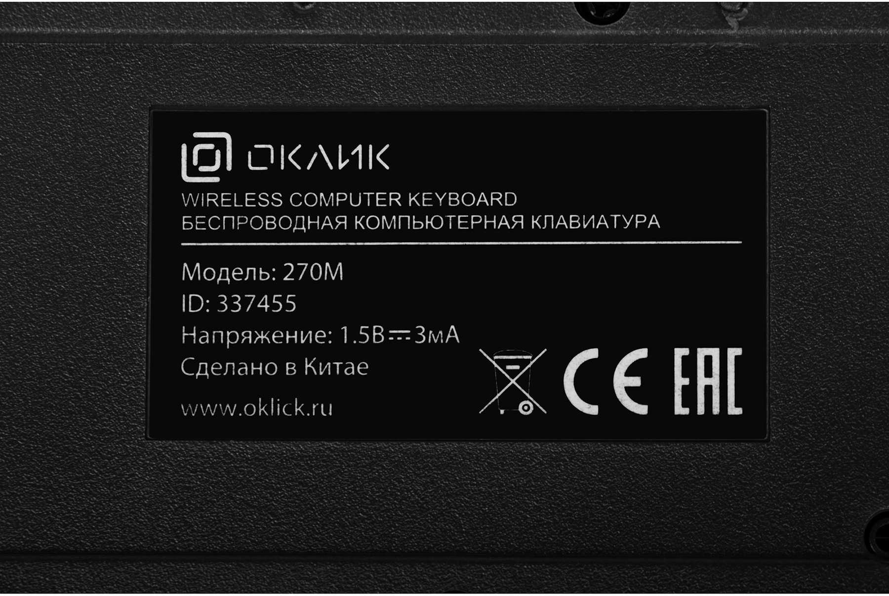 Комплект клавиатура/мышь OKLICK, Беспроводной, чёрный, 337455