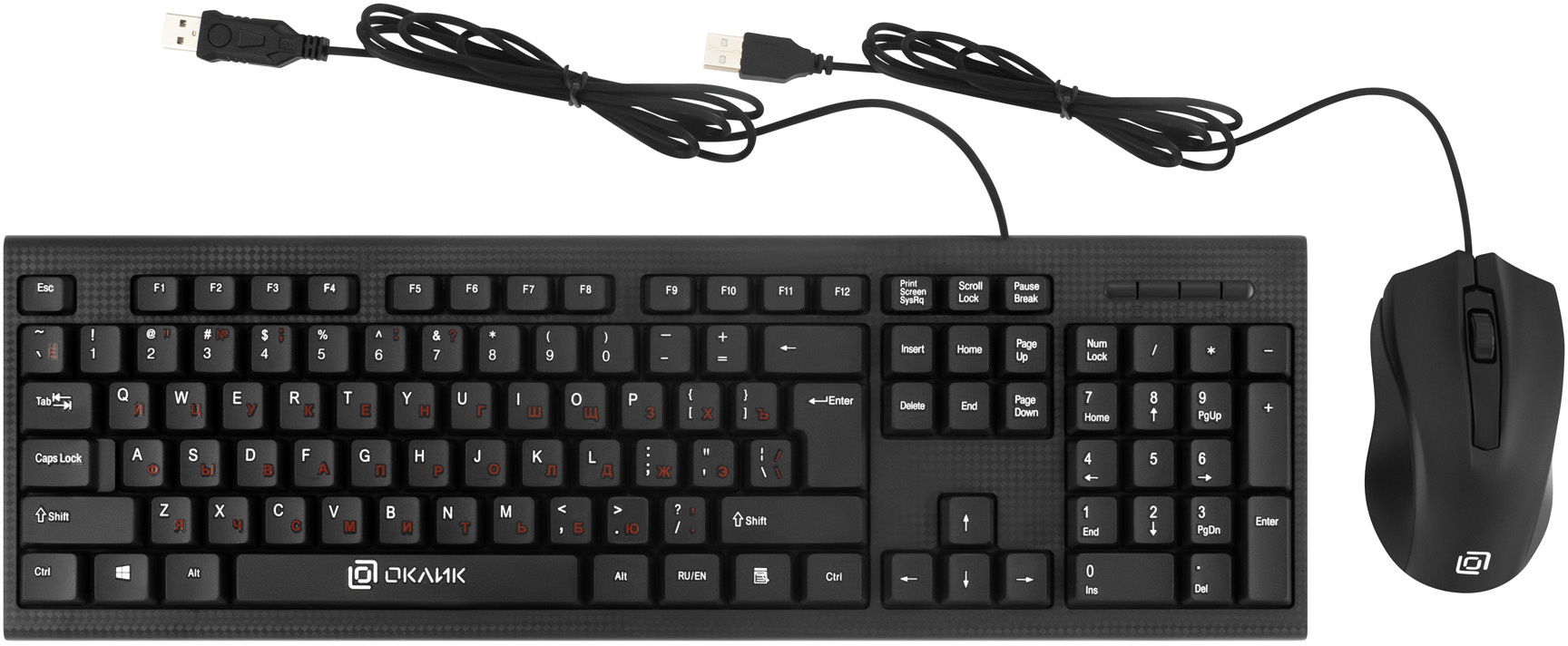 Выбрать товарыКомплект клавиатура/мышь OKLICK, Проводной, чёрный, 475652
