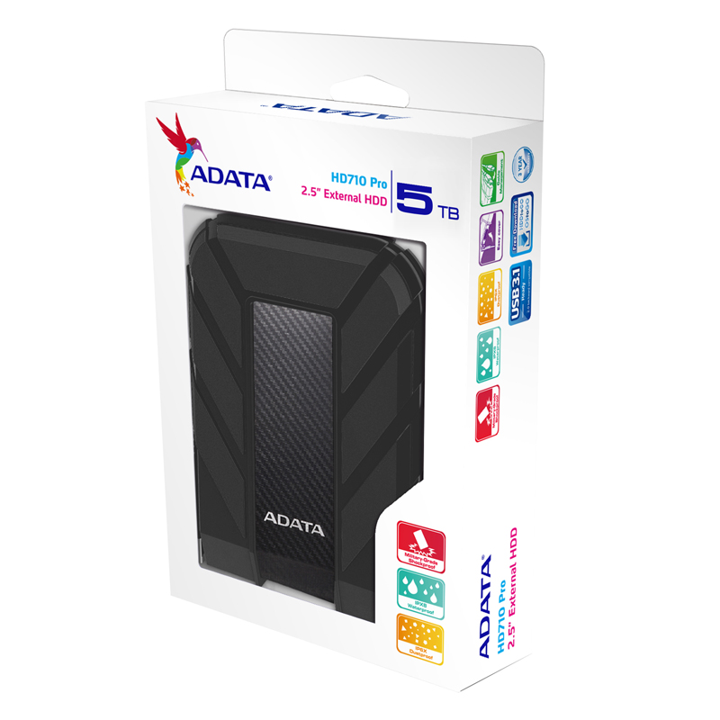 Внешний диск HDD ADATA - HD710 Pro, 5 ТБ, 2.5", USB Type A, Питание по USB, чёрный, AHD710P-5TU31-CBK