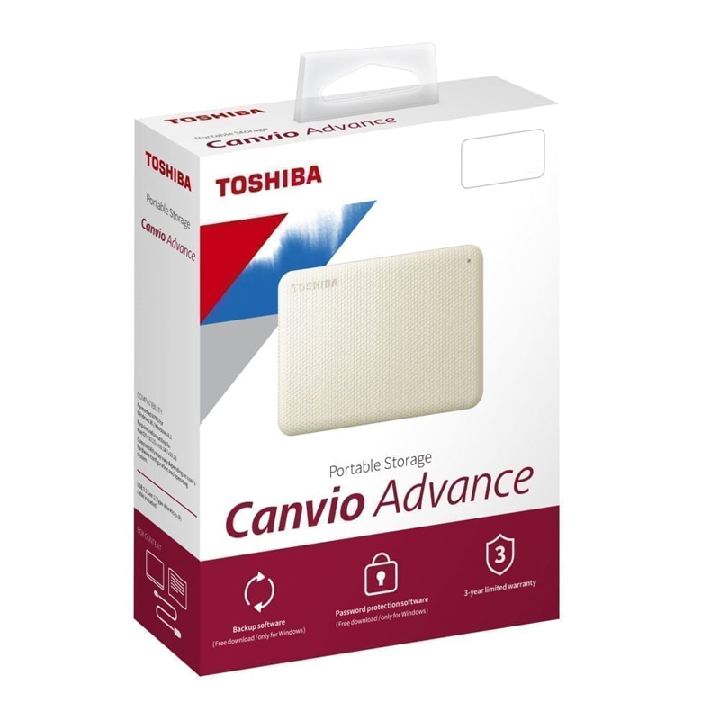 Внешний диск HDD Toshiba - Canvio Advance, 2 ТБ, 2.5", USB Type A, Питание по USB, бежевый, HDTCA20EW3AA