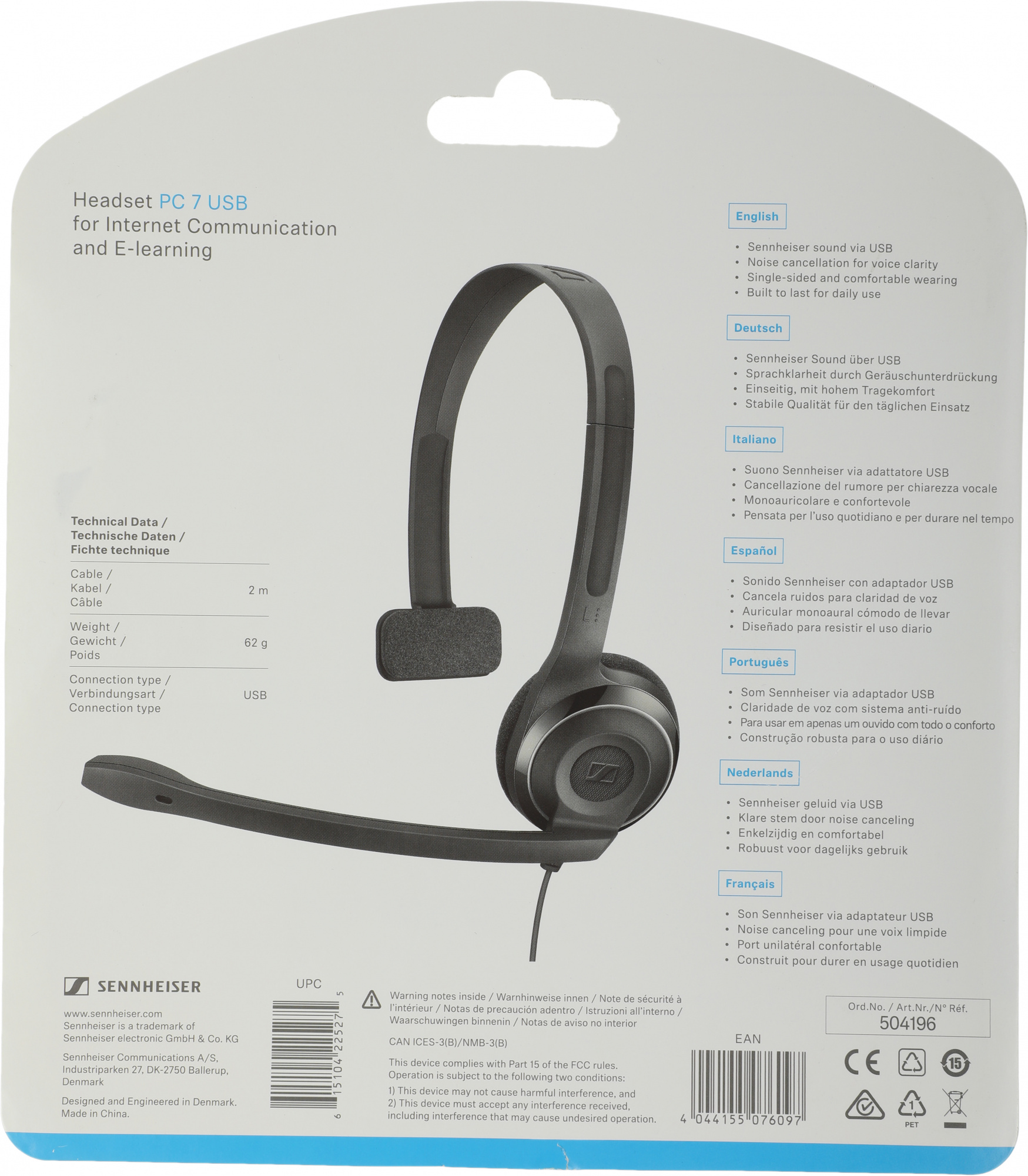 Наушники Epos - PC 7, Моно, USB, проводной, 42Hz – 17kHz, 90Hz – 15kHz, цвет чёрный, 504196