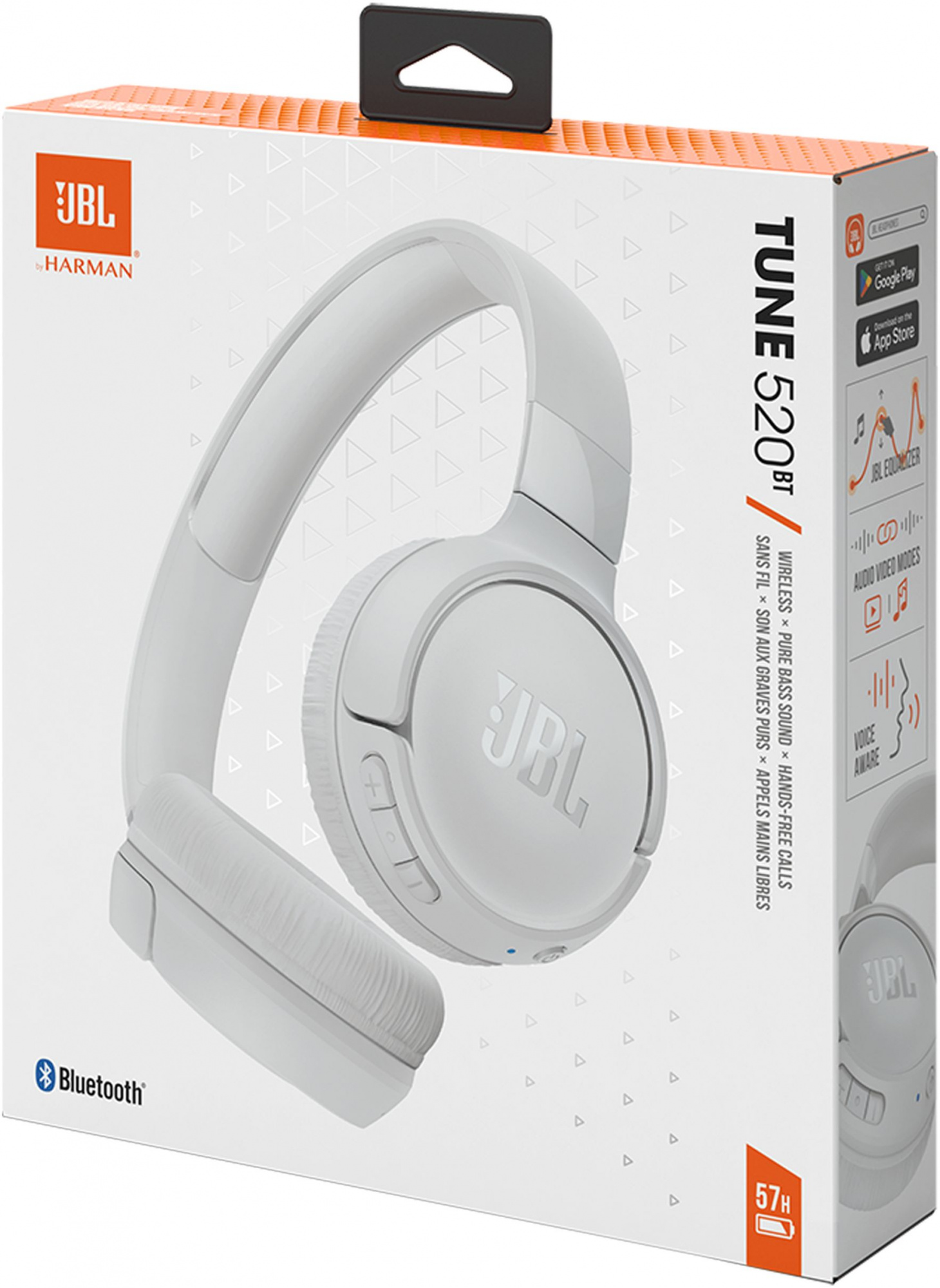 Наушники JBL - Tune 520BT, Стерео, Bluetooth, беспроводной, цвет белый, JBLT520BTWHT