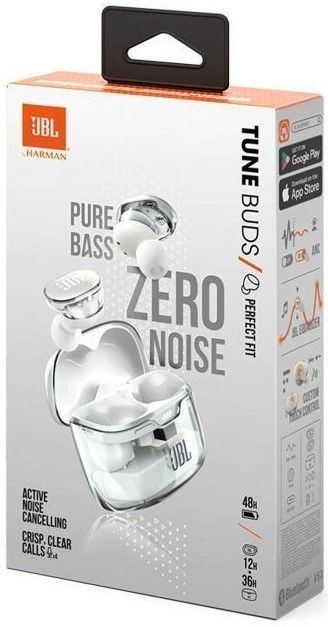 Наушники JBL - Tune Buds Ghost, Стерео, 10 метров, batt 12h, беспроводной, цвет белый, JBLTBUDSGWHT