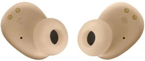Беспроводные вкладыши с бежевым корпусом, смотрятся стильно и неброско. Удобно сидят, звук богатый, бас отчётлив. Микрофон передаёт речь без задержек, можно уверенно говорить. Зарядный футляр продлевает автономность, хватает на день. Тactильное управление элементарное.