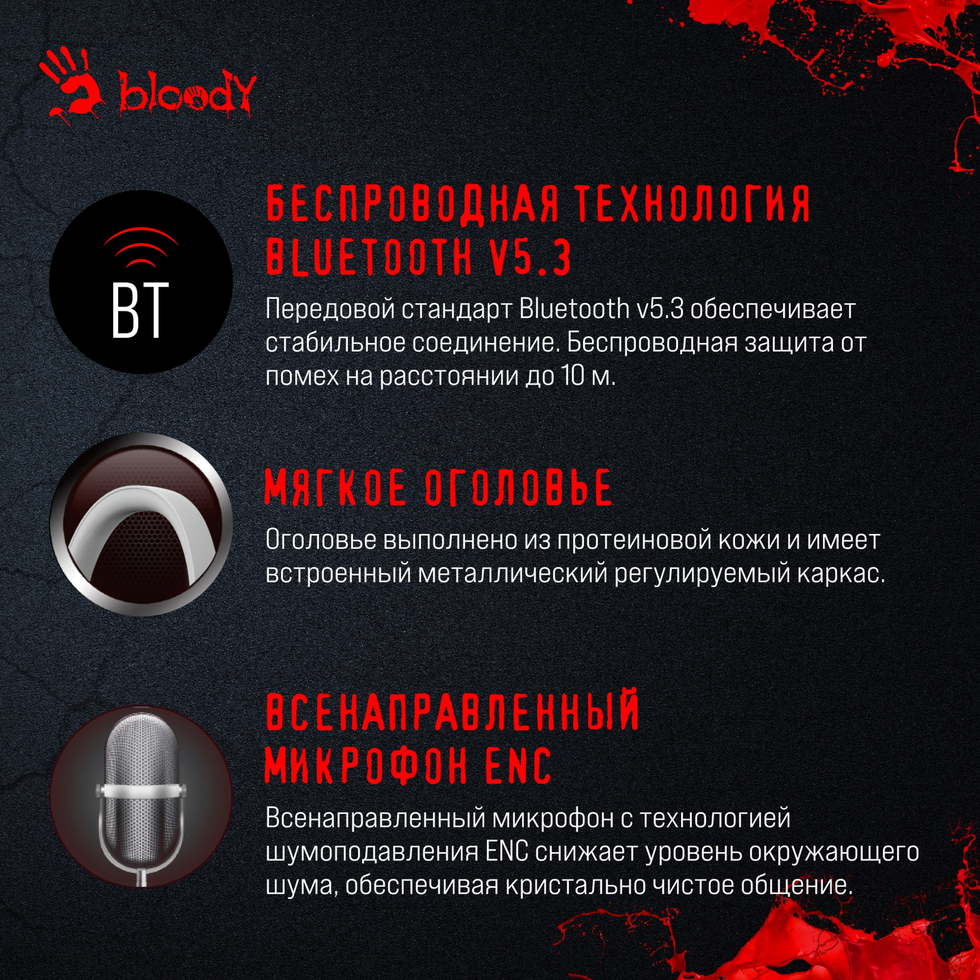 Наушники A4Tech - Bloody MH390, Стерео, 3.5 мм, Bluetooth, беспроводной, цвет белый, MH390 WHITE
