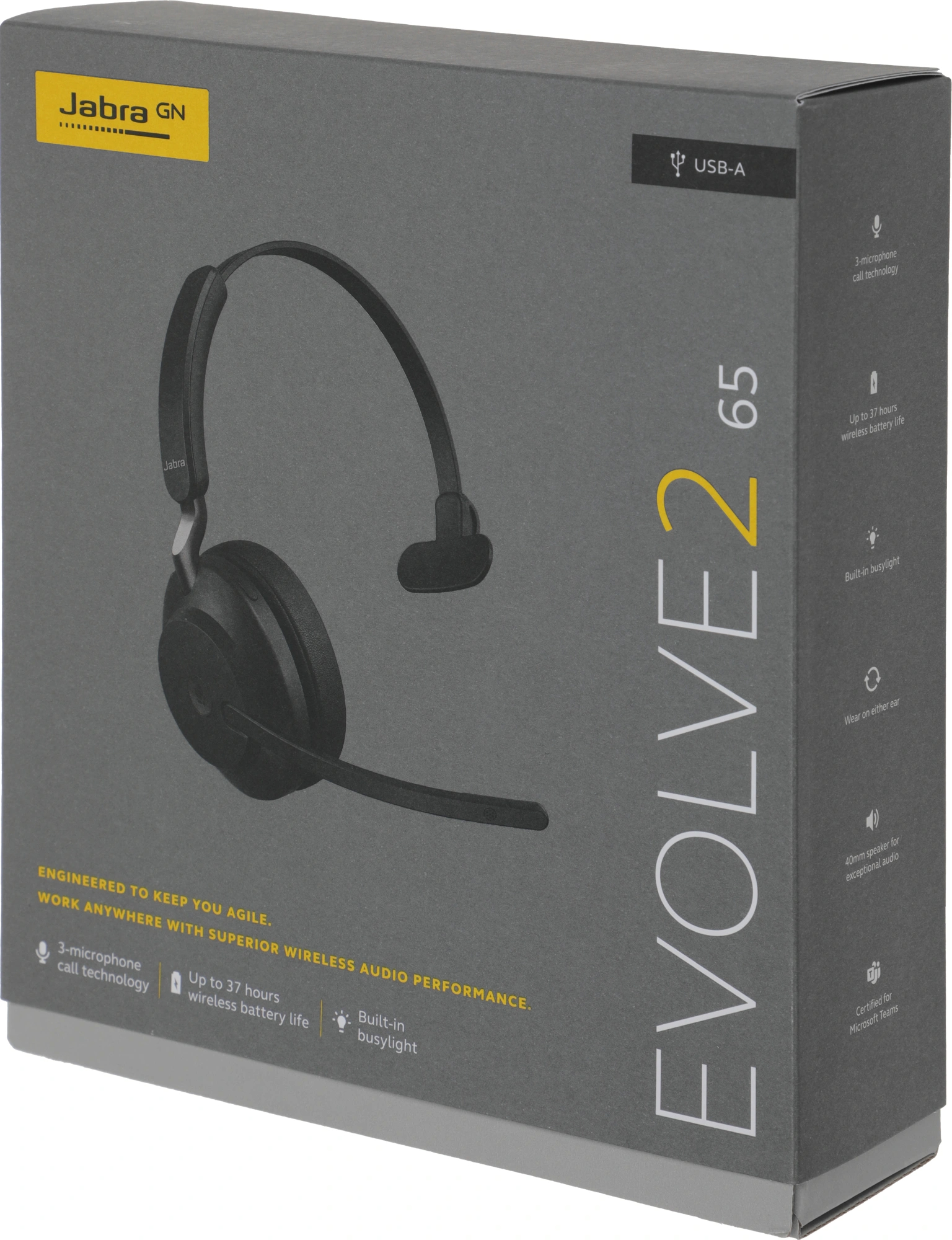 Наушники Jabra - Evolve2 65, Моно, batt 37h, беспроводной, 20Гц-20КГц, цвет чёрный, 26599-899-999