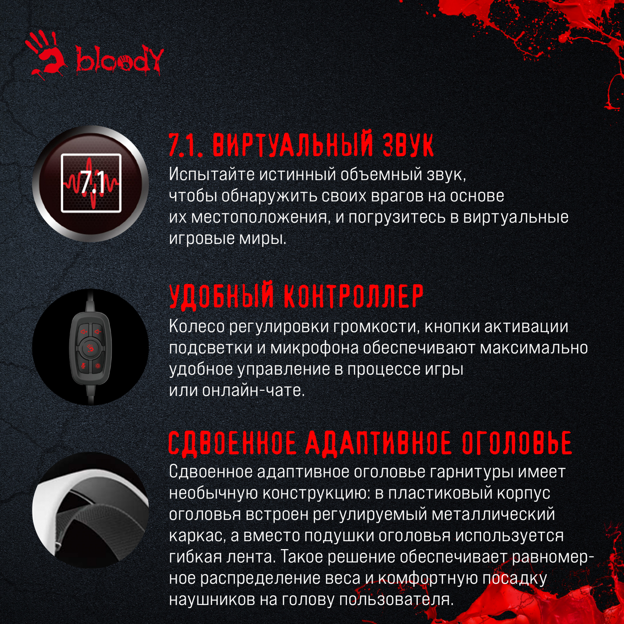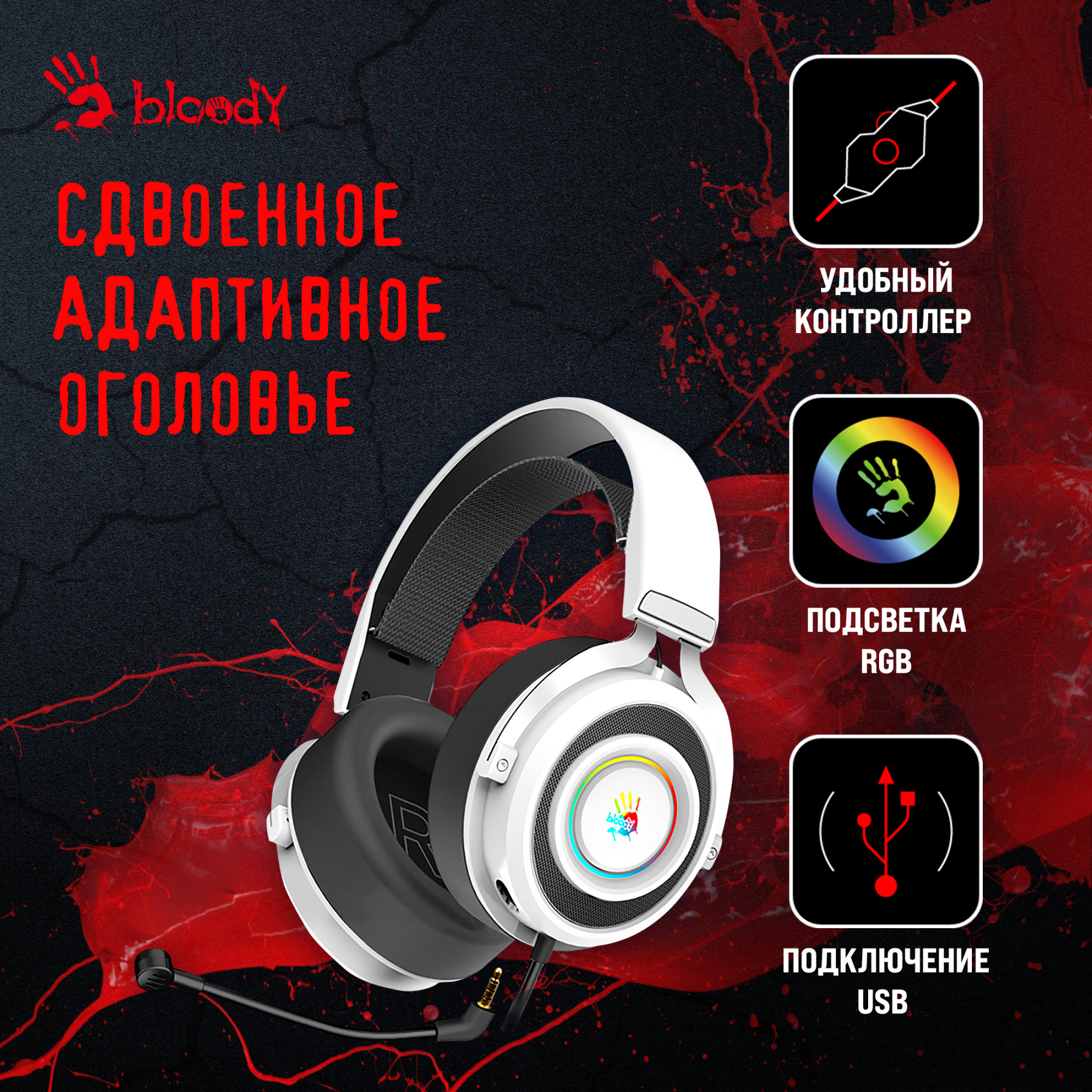 Наушники A4Tech - Bloody G535, многоканальная 7.1, проводной, 20Гц-20КГц, цвет белый, G535 (BLACK+WHITE) USB