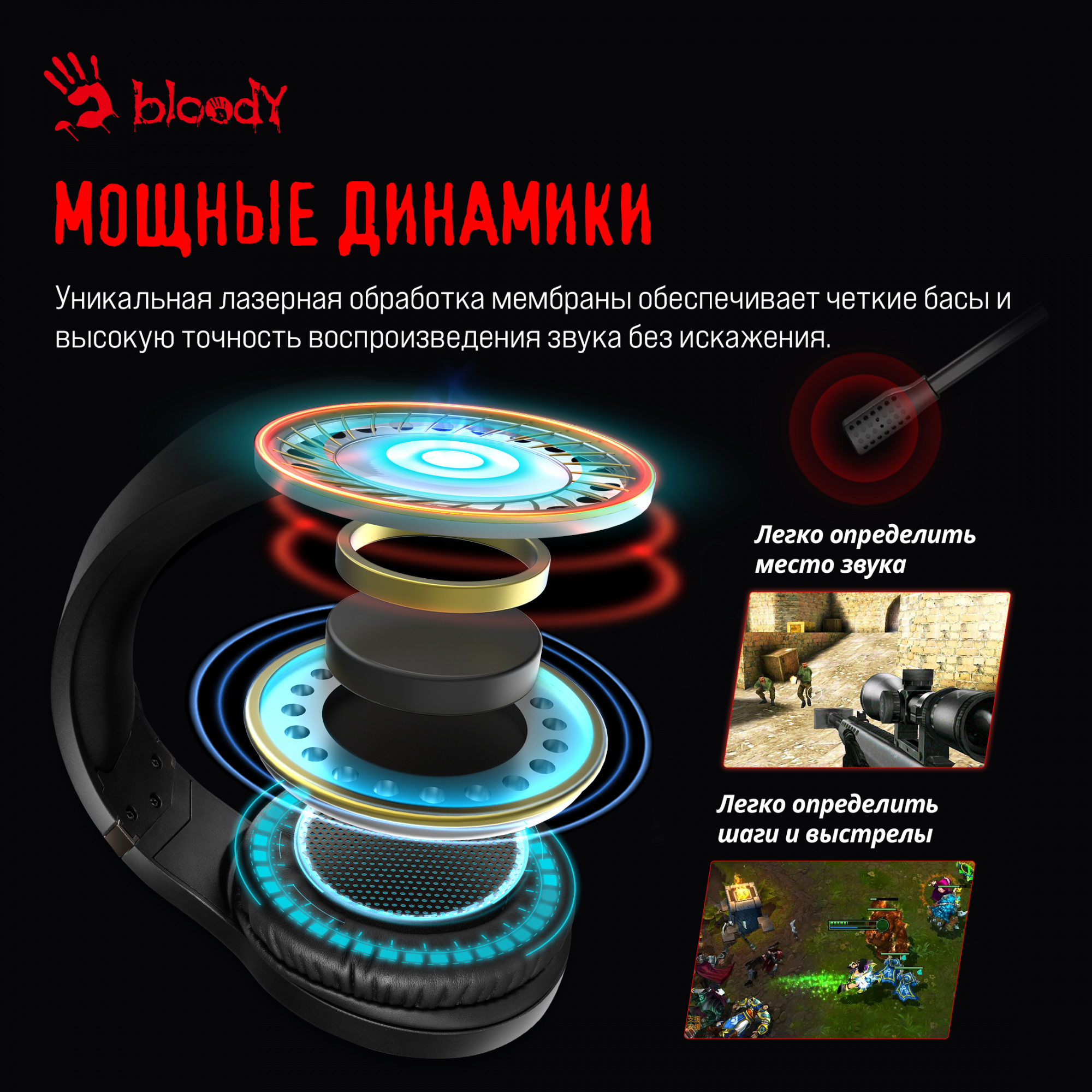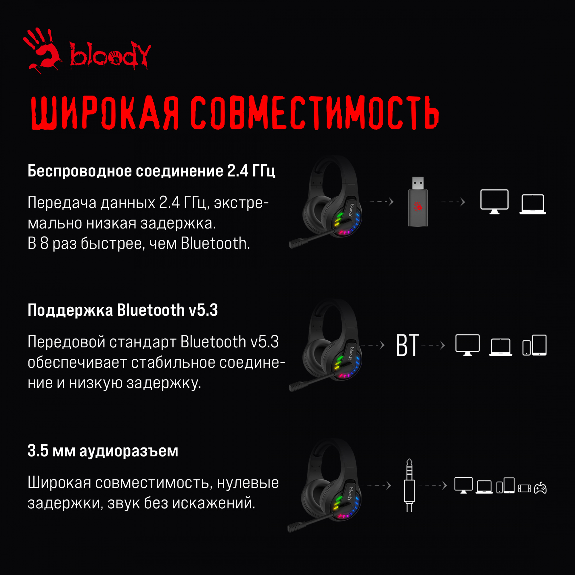 Наушники A4Tech - Bloody GR230, Стерео, Bluetooth, беспроводной, 20Гц-20КГц, цвет чёрный, GR230