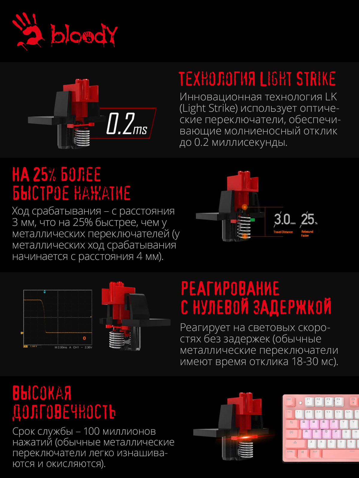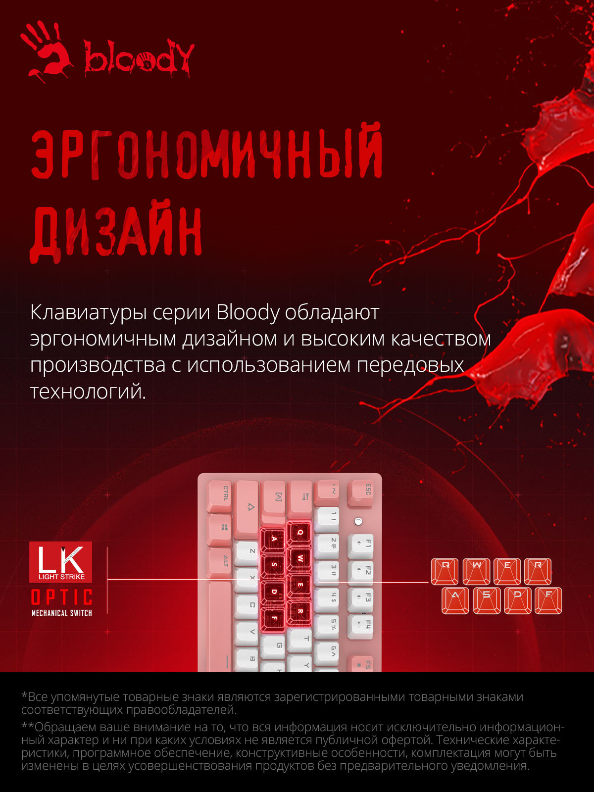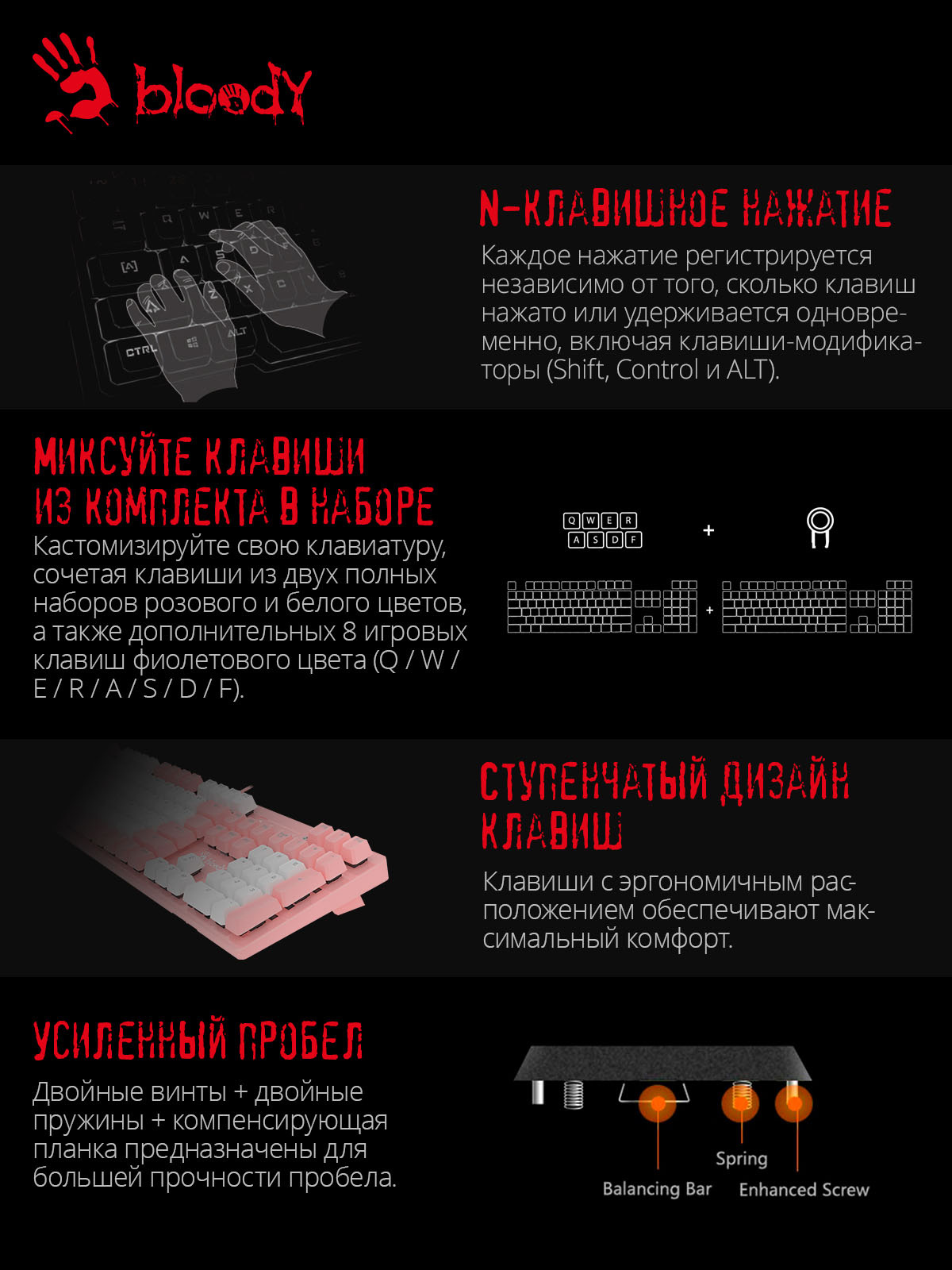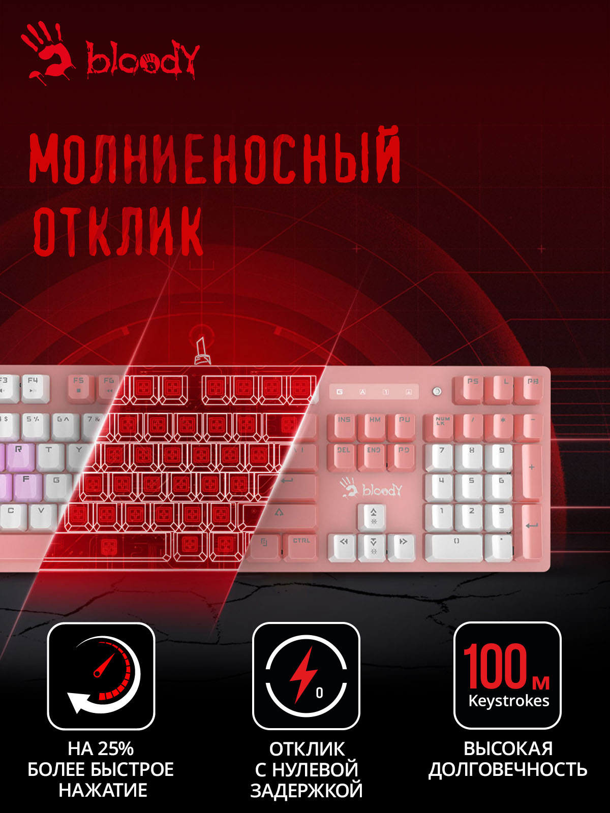 Клавиатура механическая A4Tech - Bloody B800 Dual Color, Проводная, USB, gaming, illumination keysnum pad, цвет розовый, B800 PINK