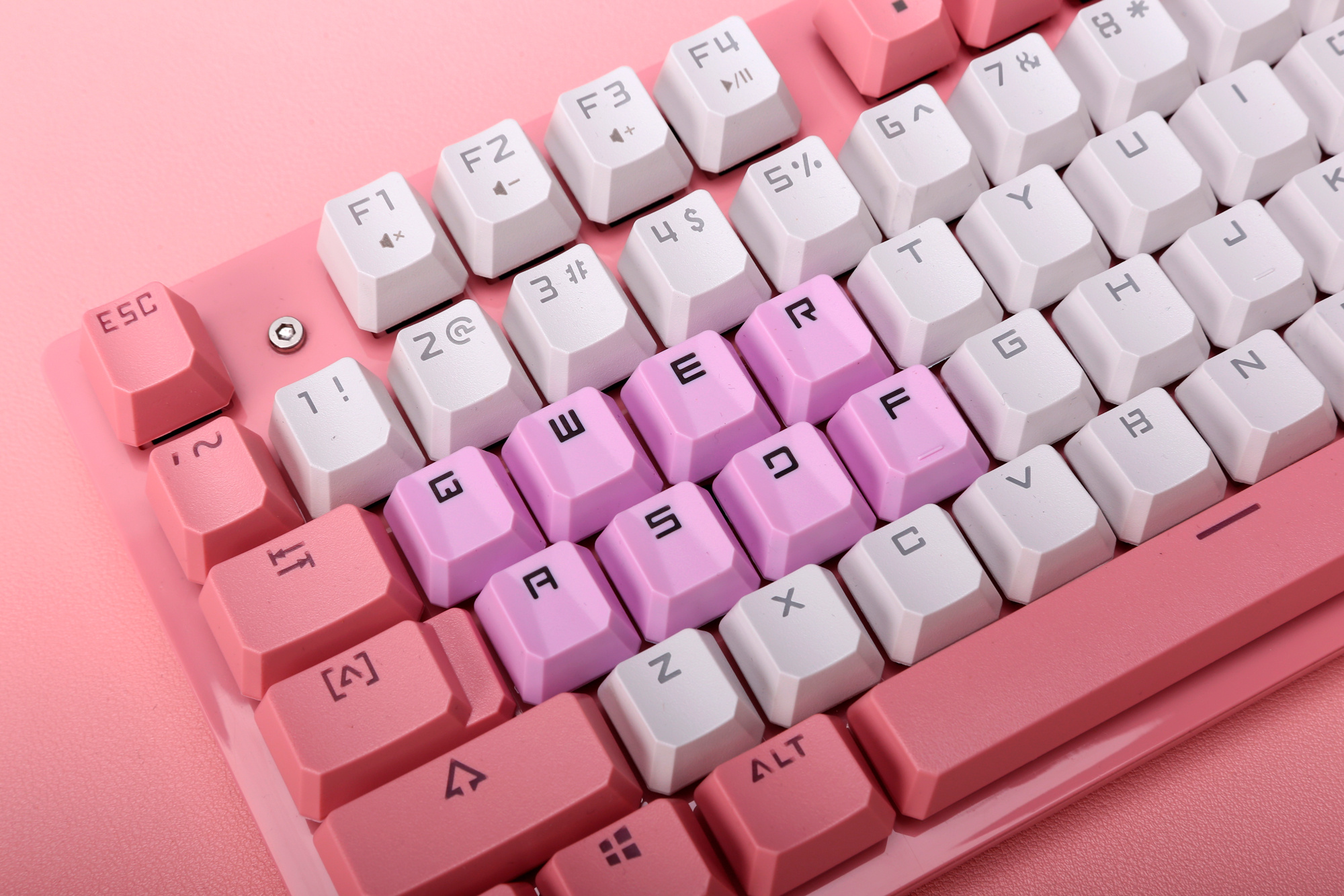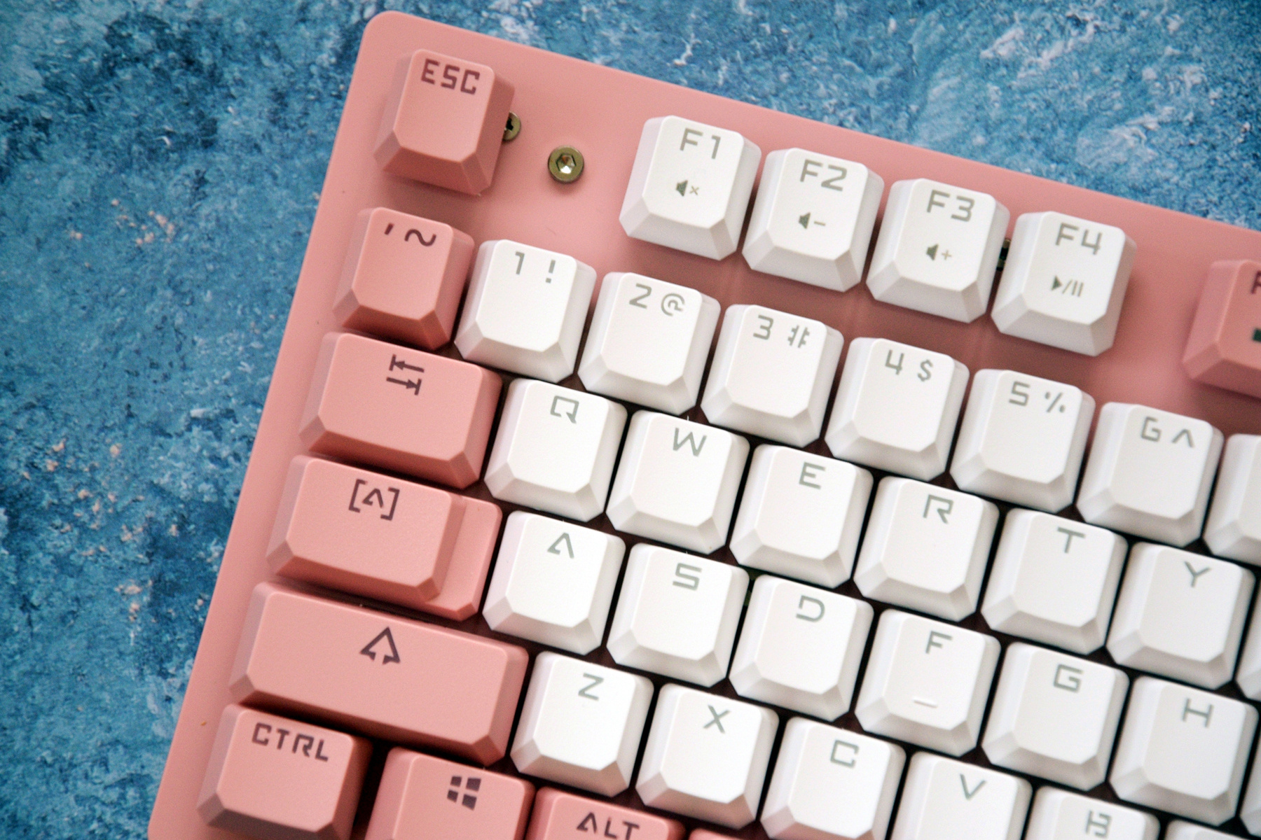 Взглянул на яркий розовый дизайн — необычно. Мембранная, но с механоподобным ходом. Подсветка монохромная, символы видно хорошо. Для офиса, где хочется немного цвета — самое то.