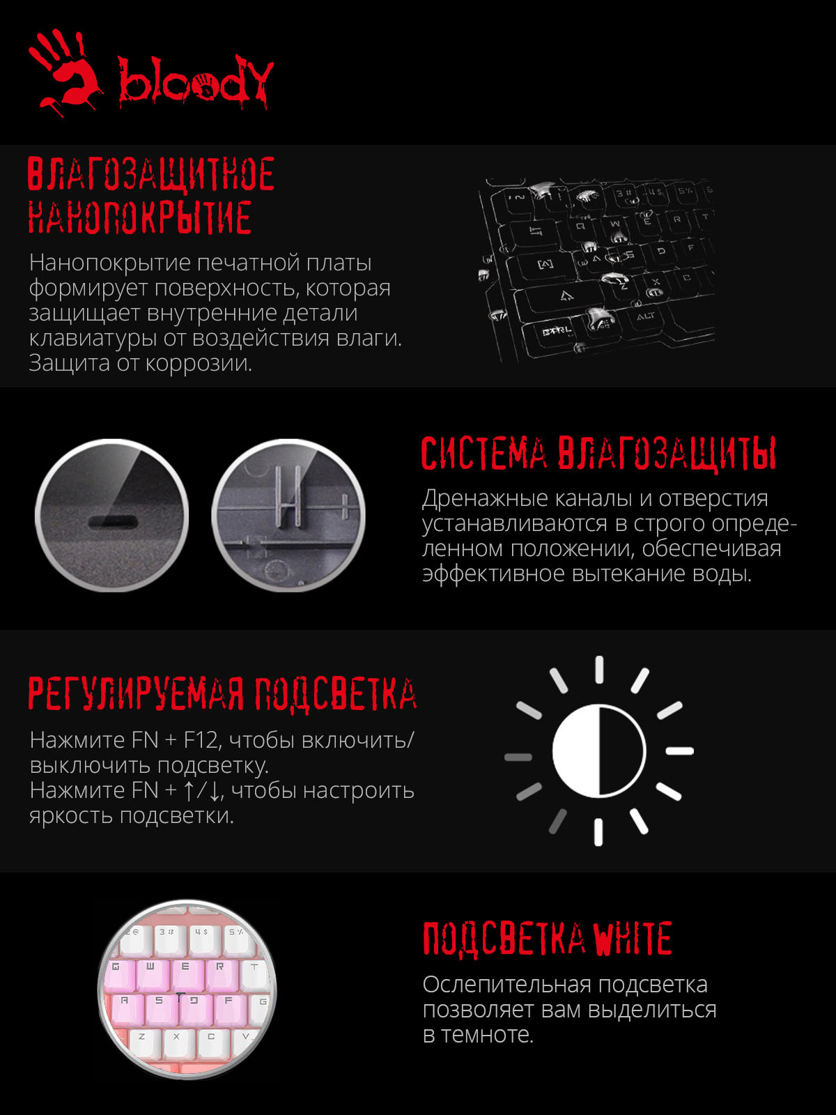 Выбрать товарыКлавиатура механическая A4Tech - Bloody B800 Dual Color, Проводная, USB, gaming, illumination keysnum pad, цвет розовый, B800 PINK