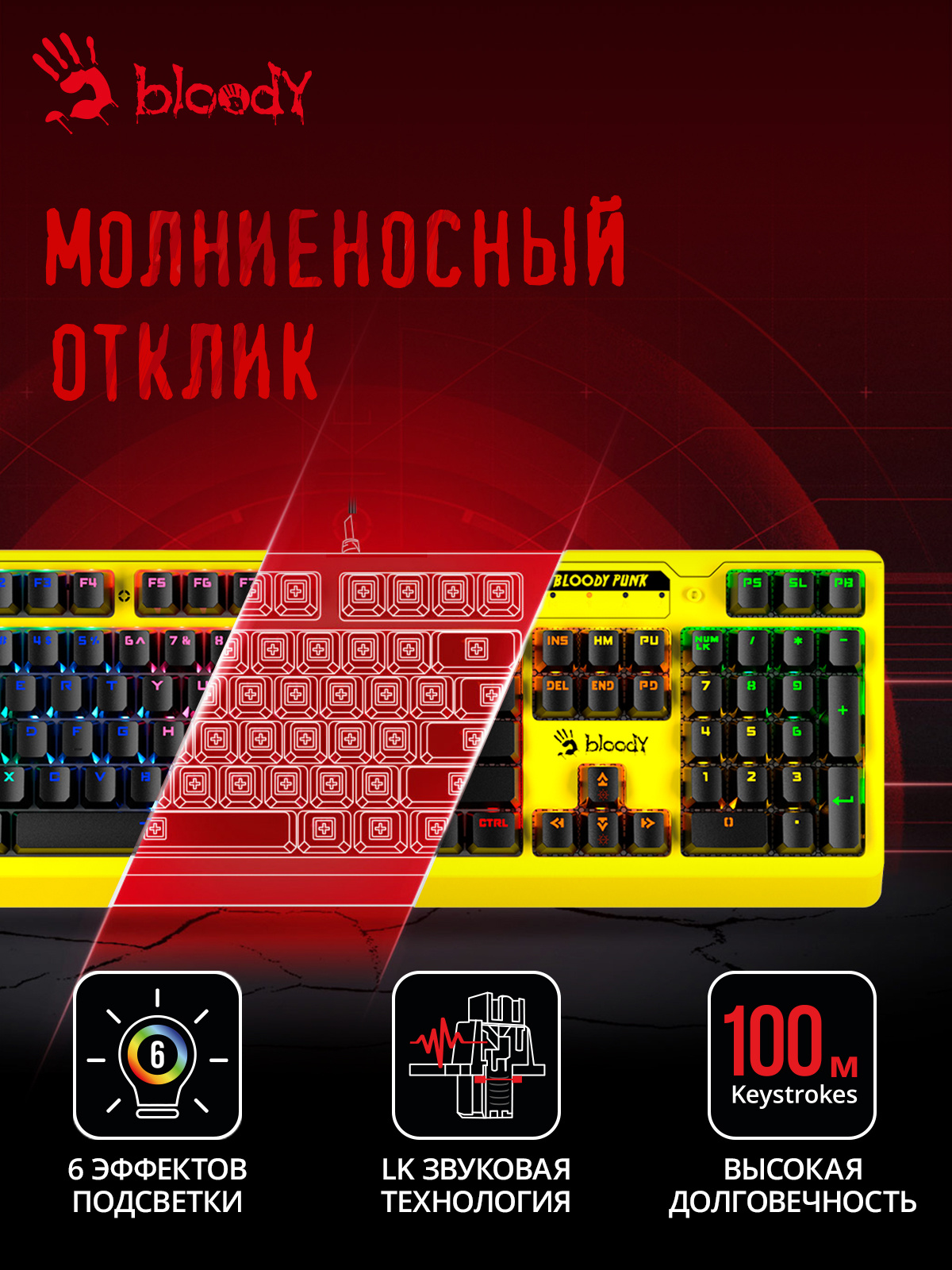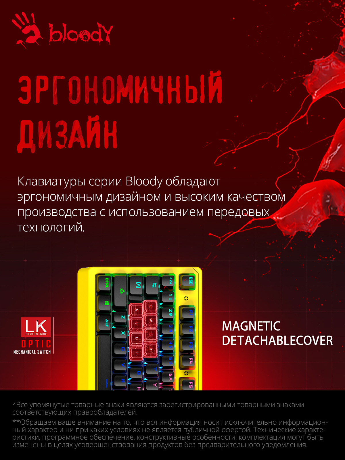 Клавиатура механическая A4Tech - Bloody B810RC Punk, Проводная, USB, gaming, illumination keysnum pad,waterproof, цвет чёрный, B810RC ( PUNK YELLOW )