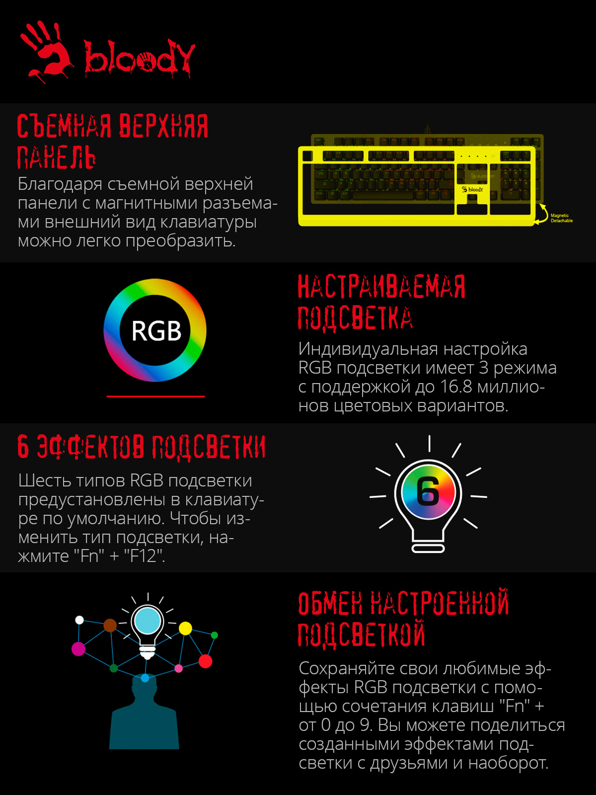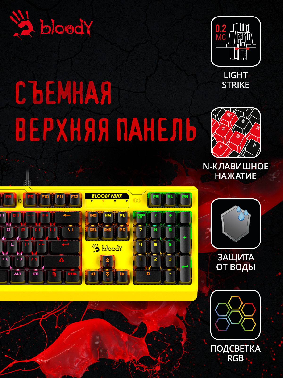 Выбрать товарыКлавиатура механическая A4Tech - Bloody B810RC Punk, Проводная, USB, gaming, illumination keysnum pad,waterproof, цвет чёрный, B810RC ( PUNK YELLOW )