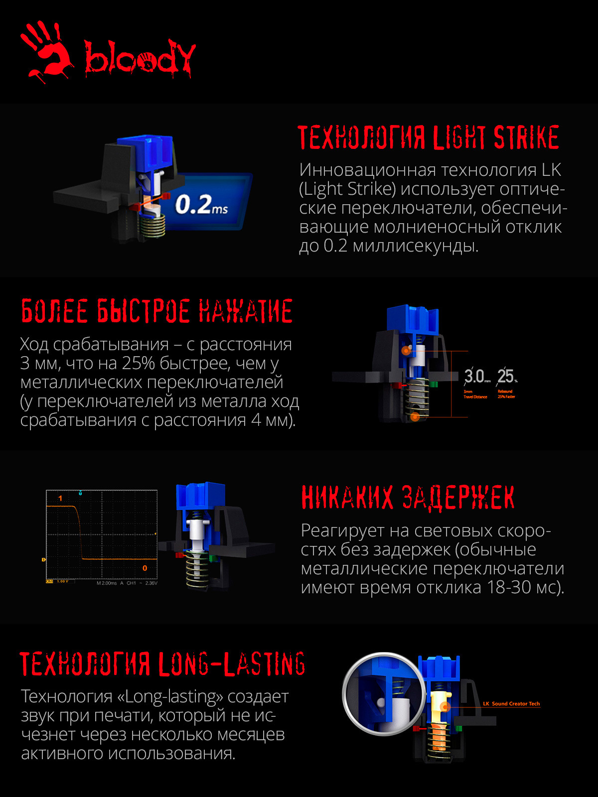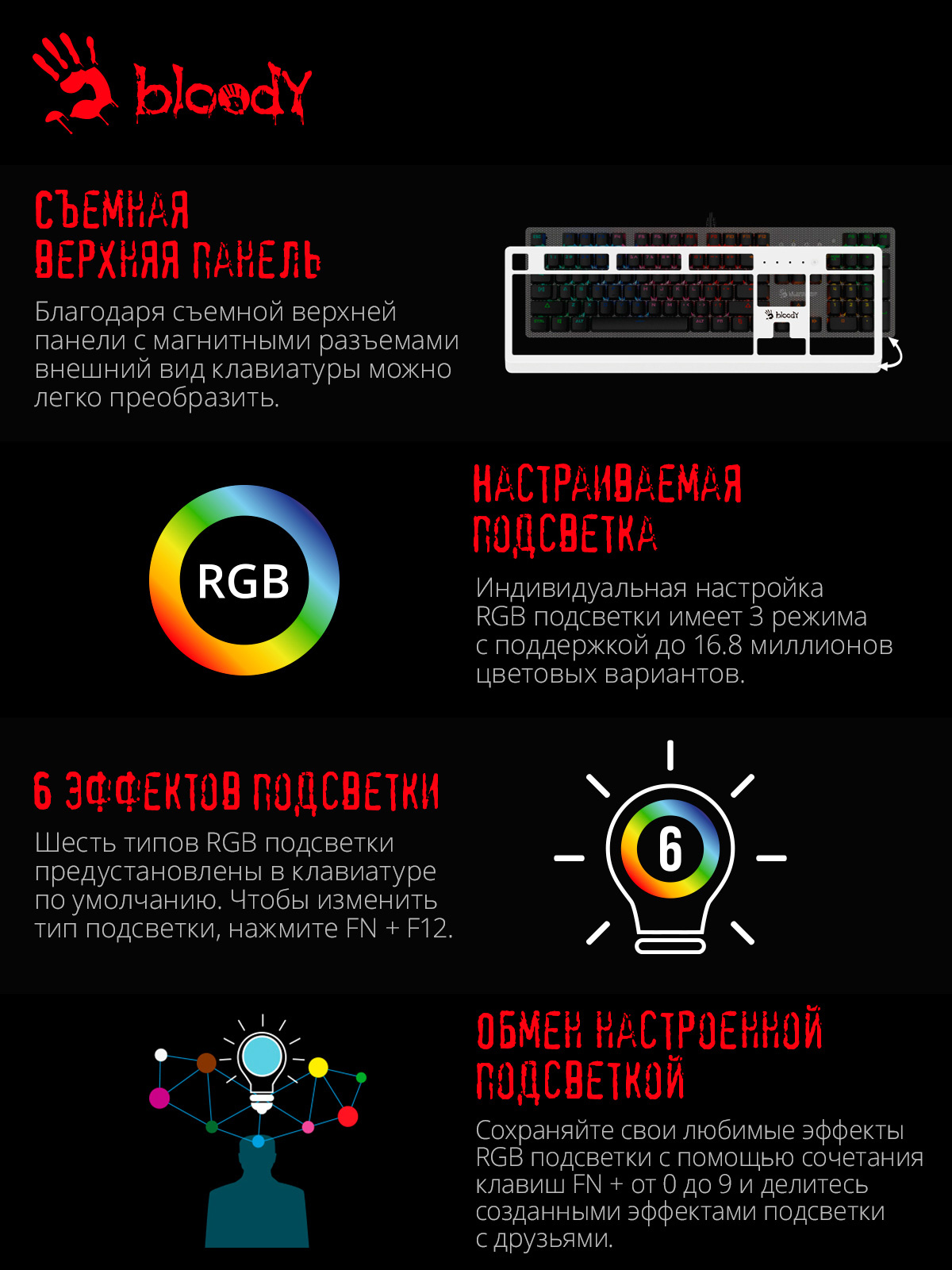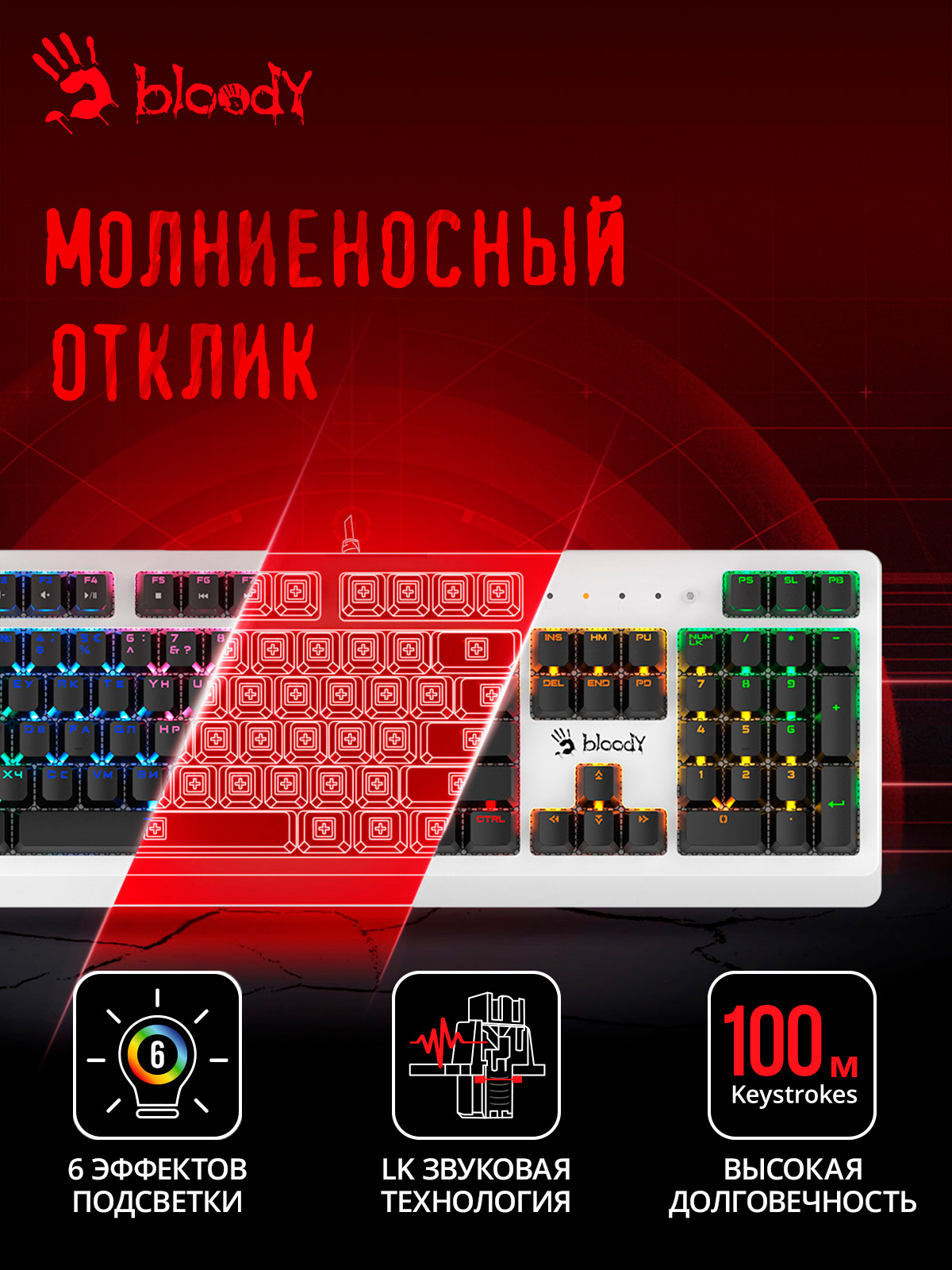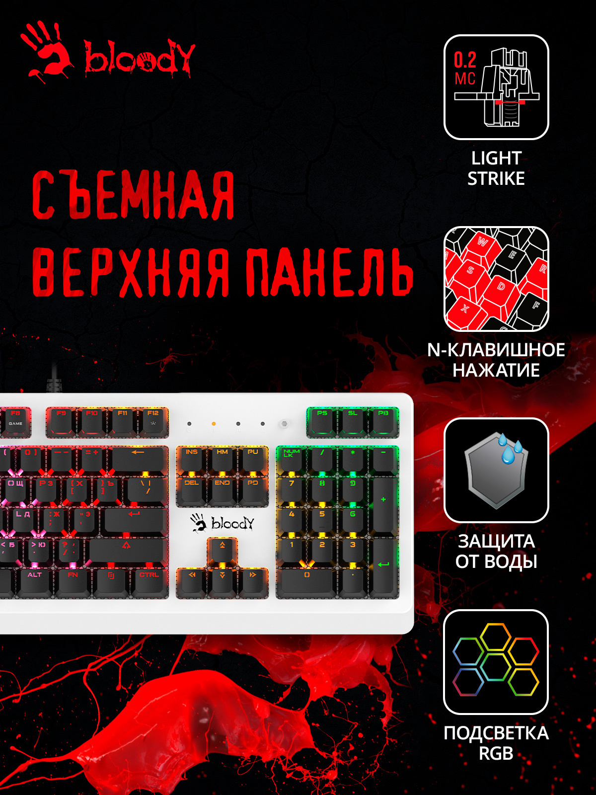 Клавиатура механическая A4Tech - Bloody B810RC, Проводная, USB, gaming, illumination keysnum pad,waterproof, цвет чёрный, B810RC ( WHITE )