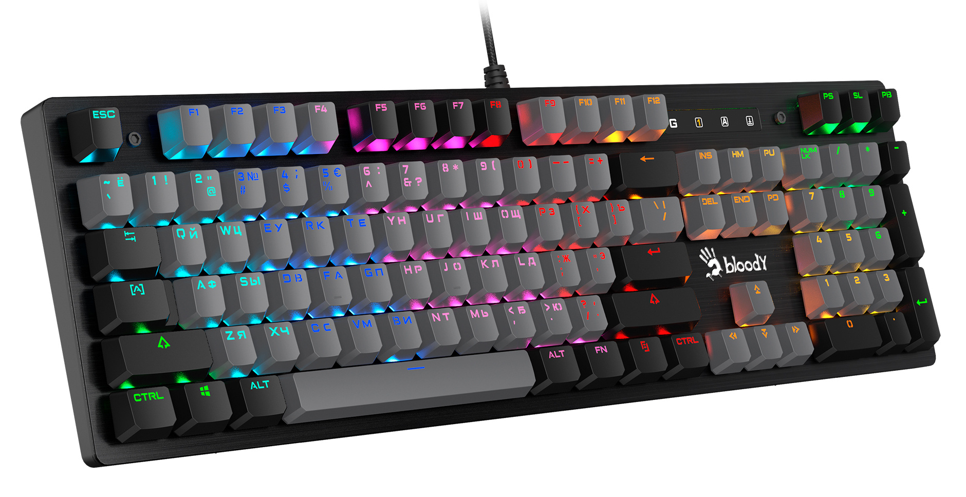 Клавиатура механическая A4Tech - Bloody B828N, Проводная, USB, gaming, illumination keysnum pad,waterproof, цвет серый, B828N (GREY+BLACK)