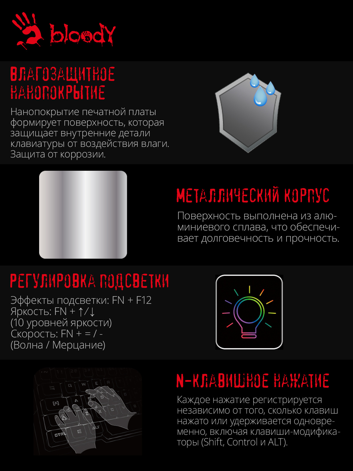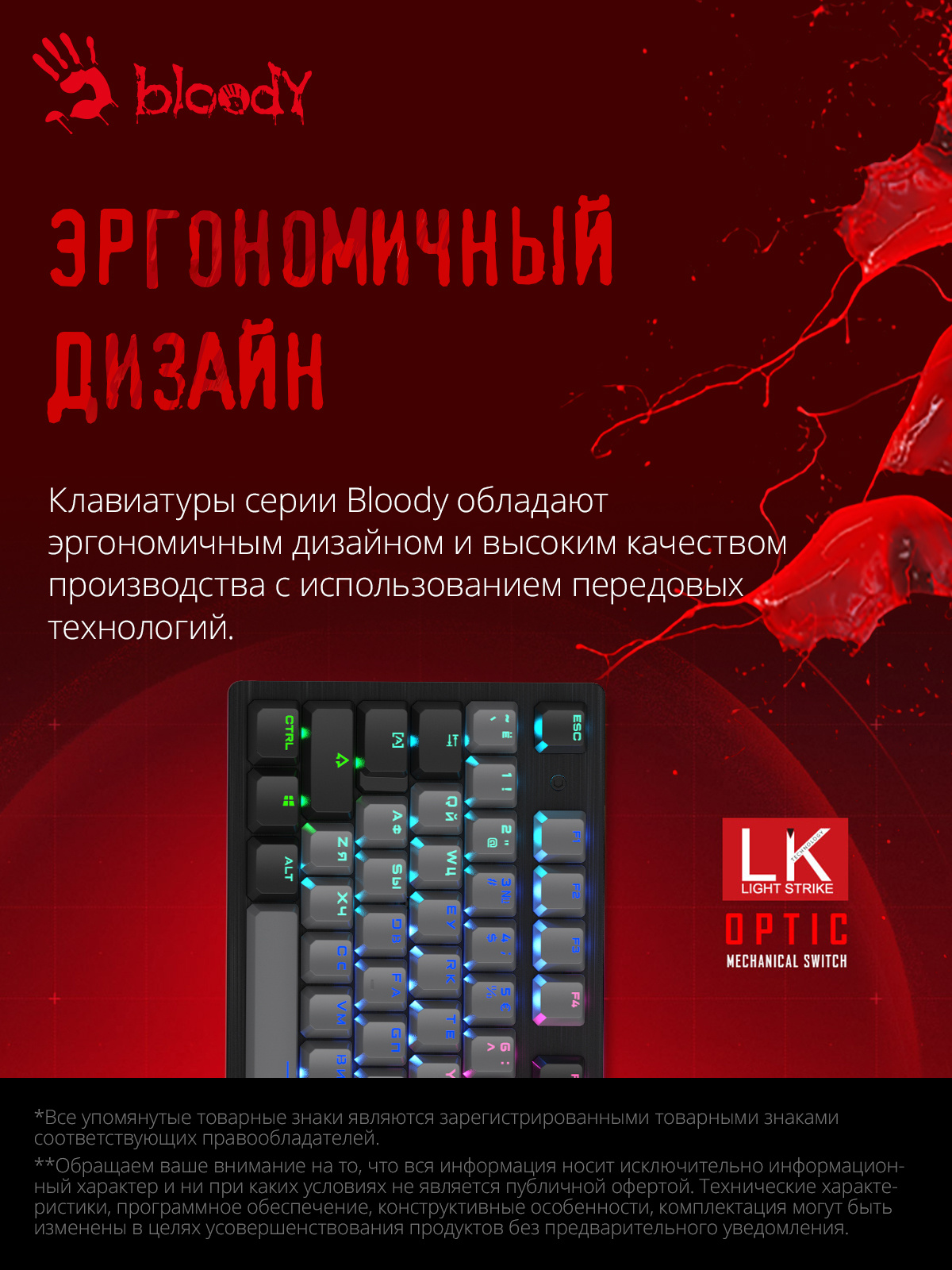 Выбрать товарыКлавиатура механическая A4Tech - Bloody B828N, Проводная, USB, gaming, illumination keysnum pad,waterproof, цвет серый, B828N (GREY+BLACK)