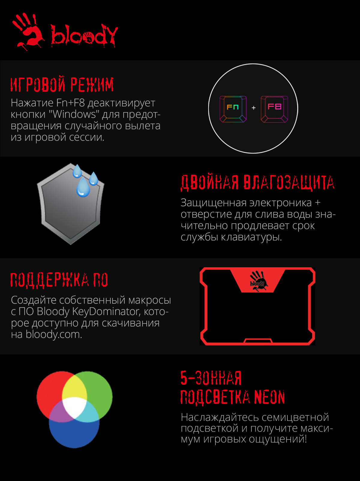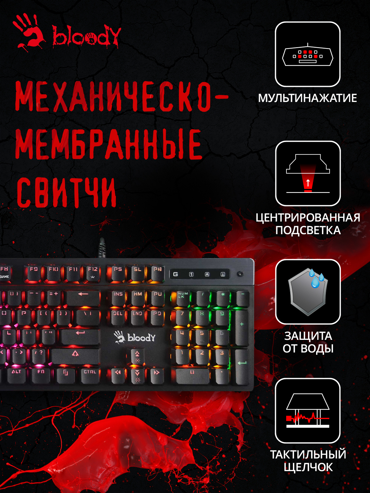 Выбрать товарыКлавиатура A4Tech - Bloody B500N, Проводная, USB, gaming, illumination keysnum pad,waterproof, цвет серый, B500N