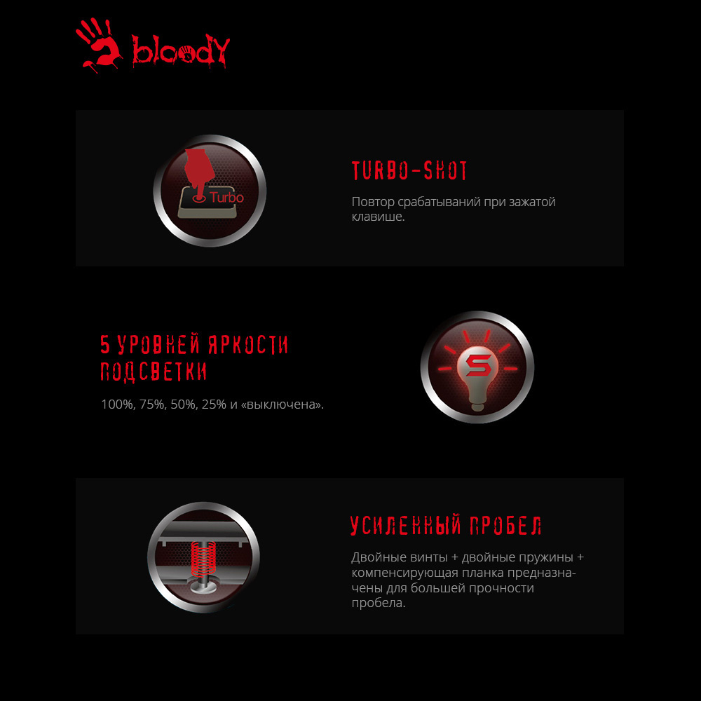 Выбрать товарыКлавиатура A4Tech - Bloody Q100, Проводная, USB, gamingnum pad,waterproof, цвет чёрный, Q100 USB