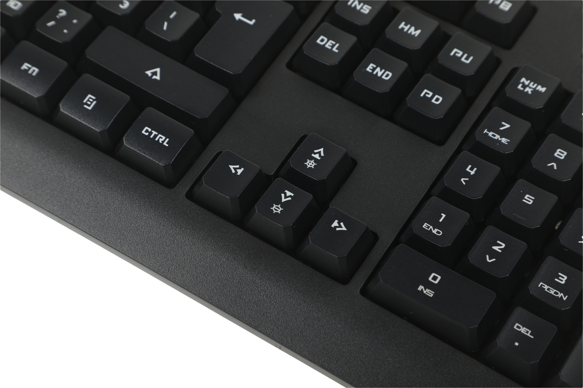 Проводная клавиатура с классической раскладкой, USB-подключение. Мембранные переключатели, щелчки тихие. Корпус чёрный, матовый, символы на кнопках контрастные. Хорошая базовая модель для дома или офиса.