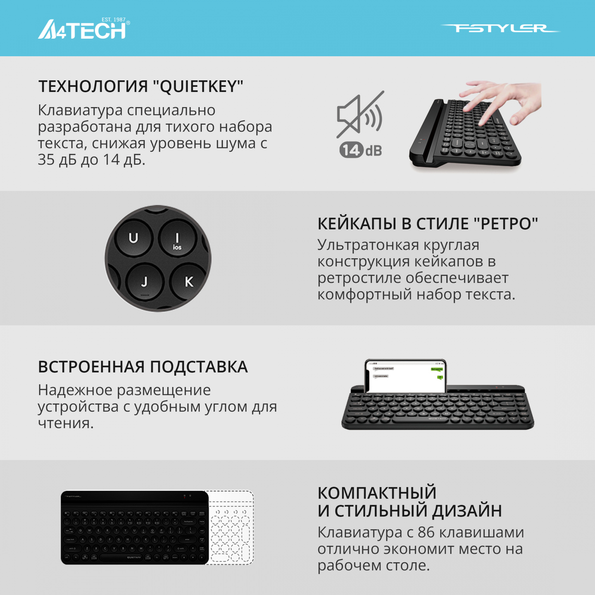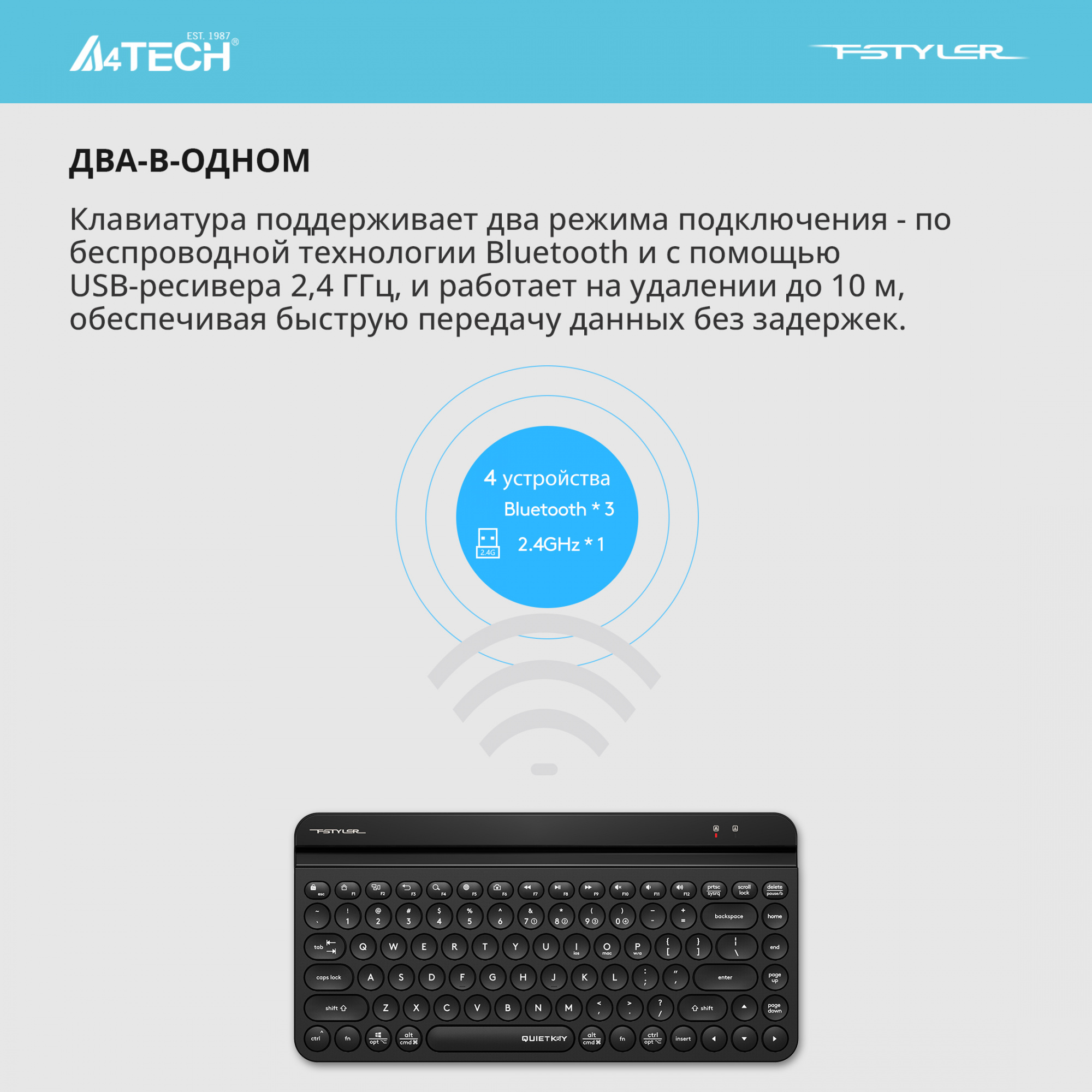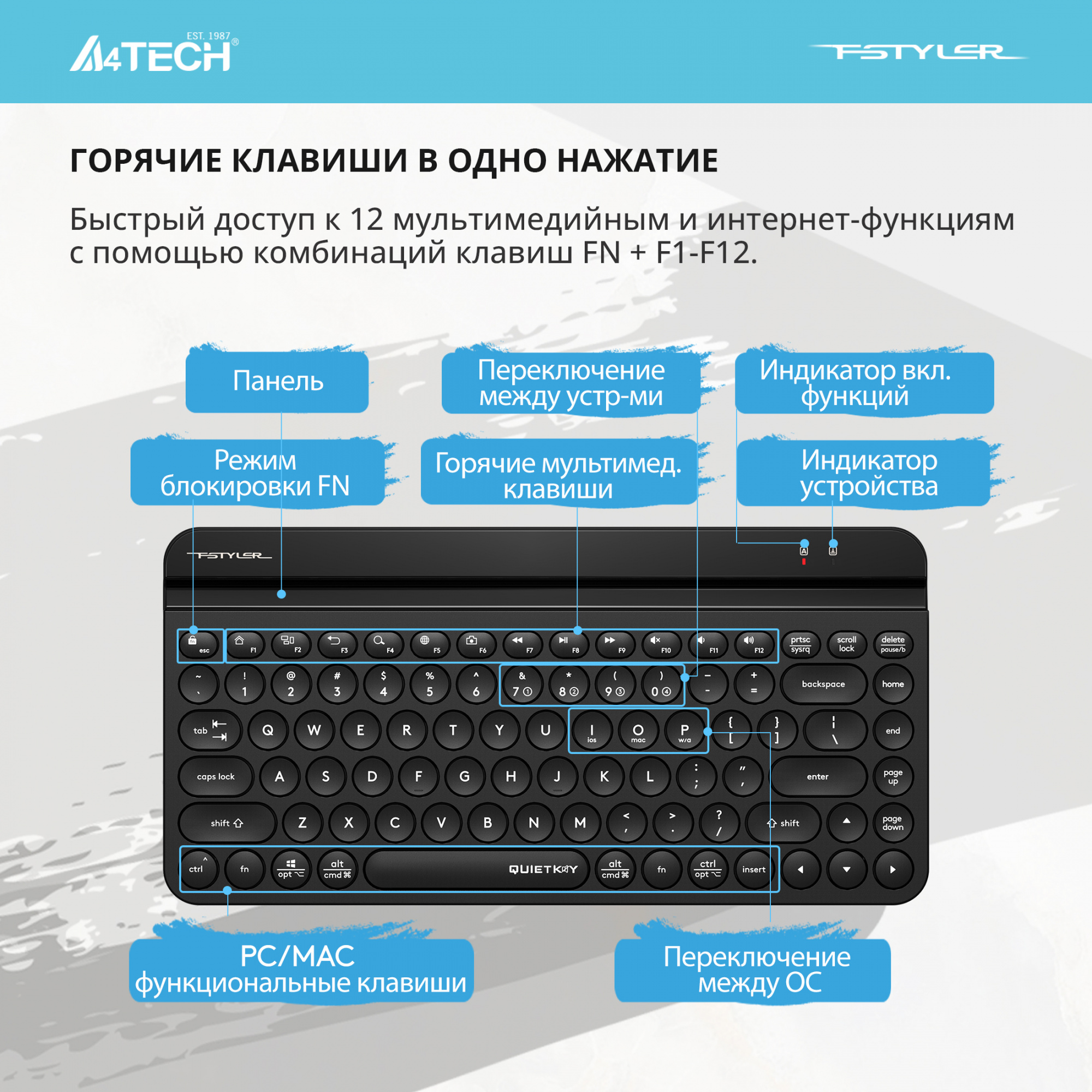 Клавиатура мембранная A4Tech - Fstyler FBK30, Беспроводная, Bluetooth, цвет чёрный, FBK30 BLACK
