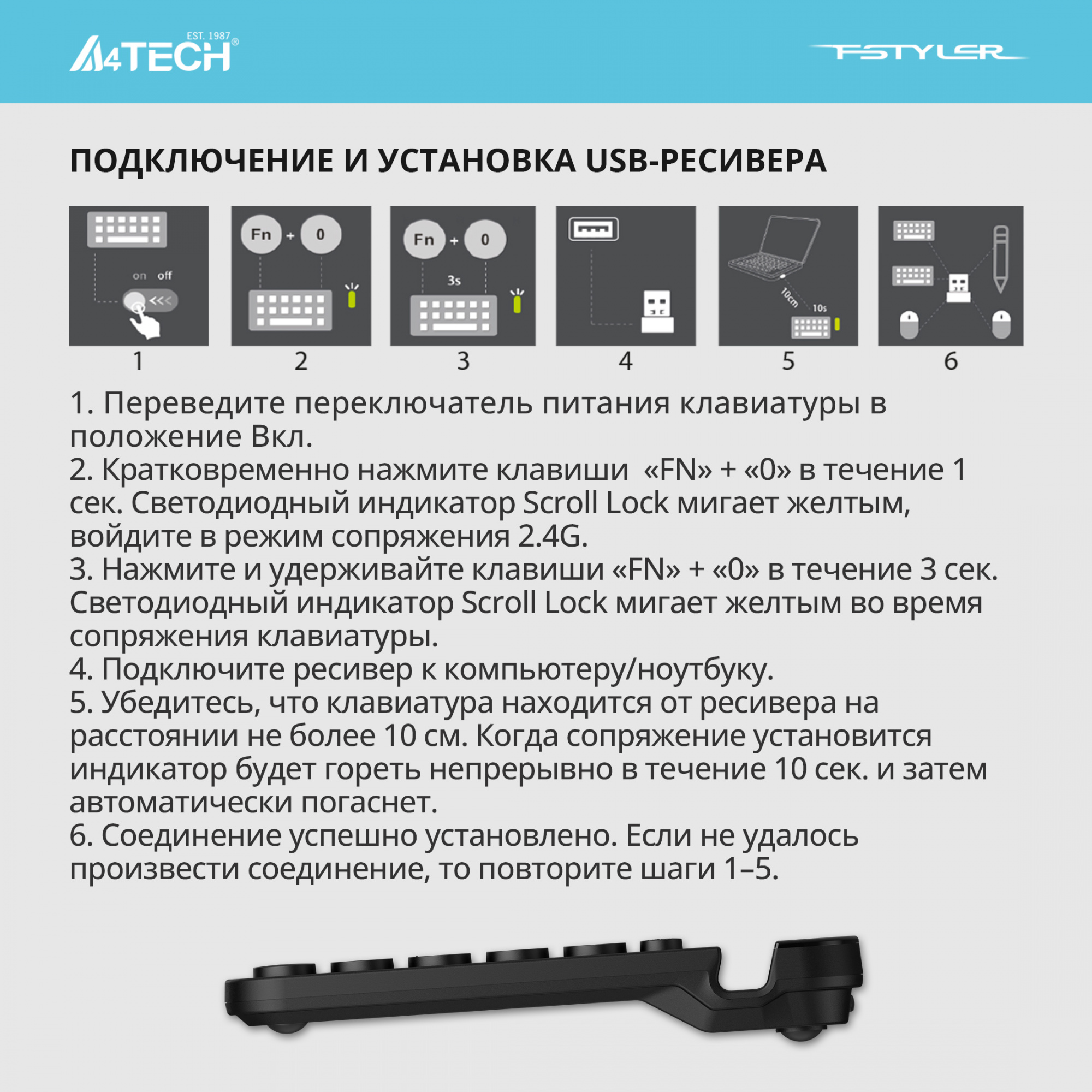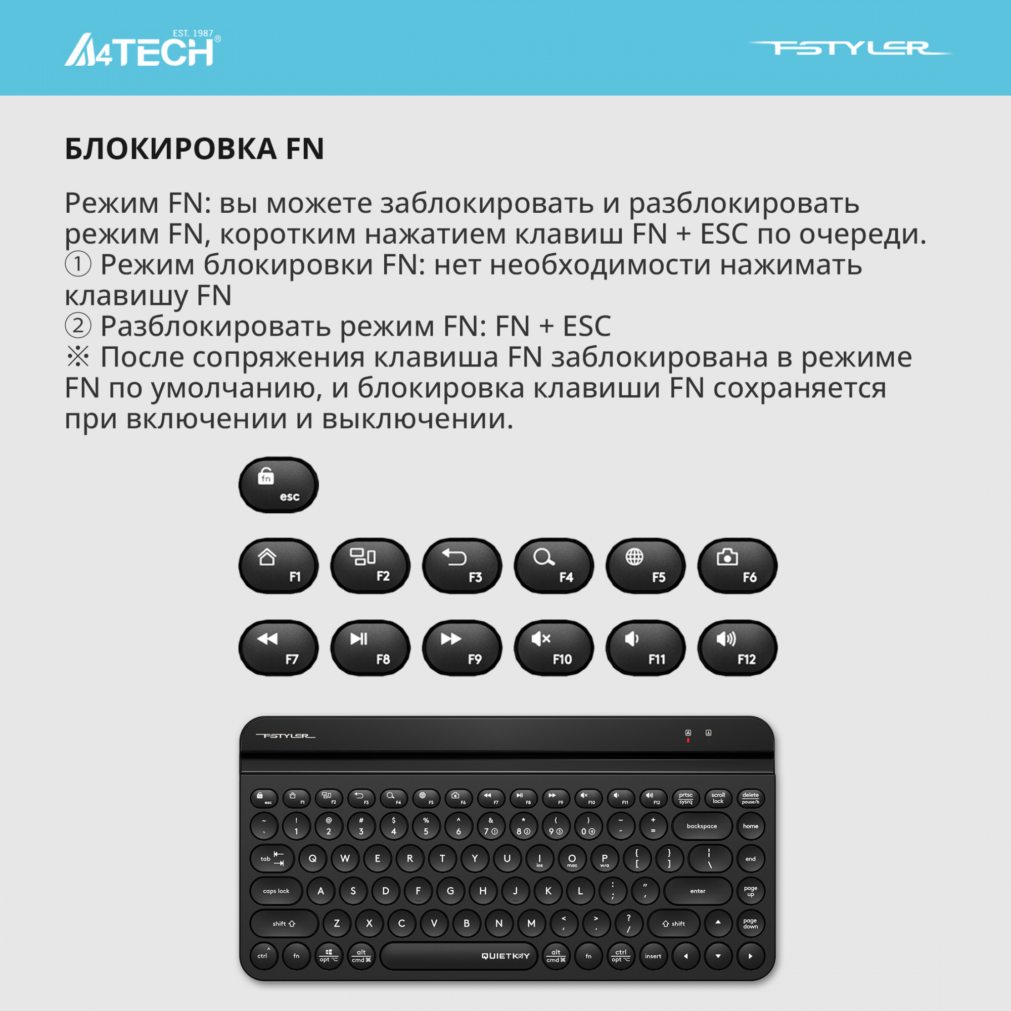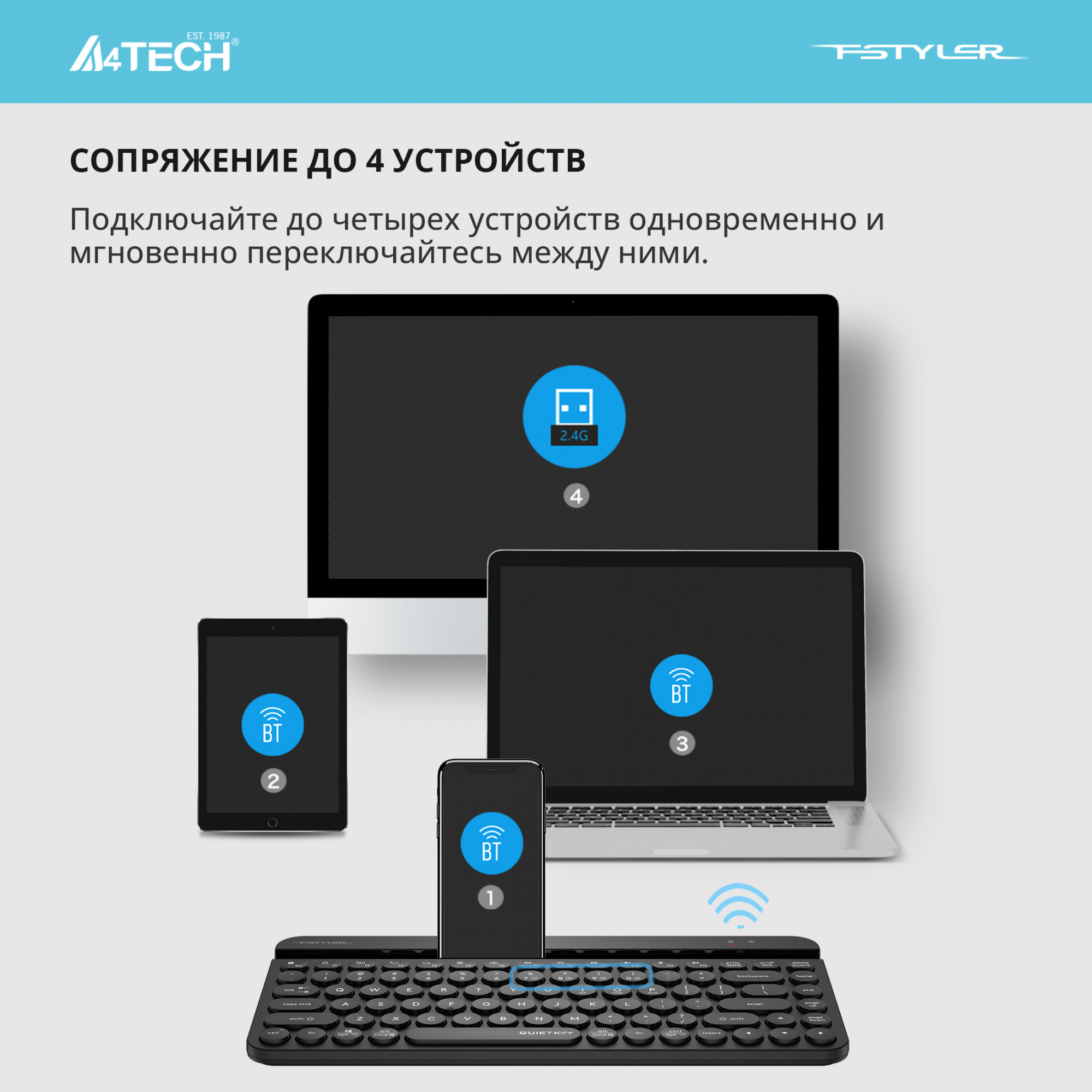 Клавиатура мембранная A4Tech - Fstyler FBK30, Беспроводная, Bluetooth, цвет чёрный, FBK30 BLACK