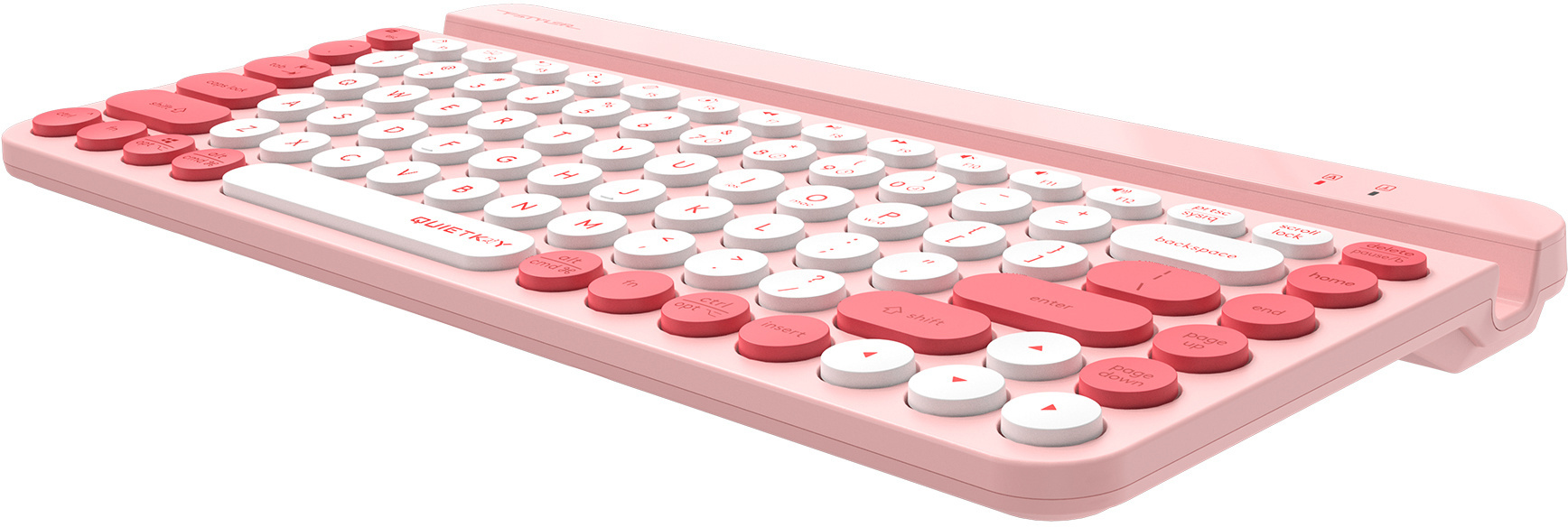 Хотелось чего-то яркого в рабочем пространстве, выбрал этот вариант с оригинальным малиновым цветом. С первого дня клавиши оказались удобными, пальцы не устают, а размер позволяет легко переносить с комнаты в комнату. Батарейки держит исправно.