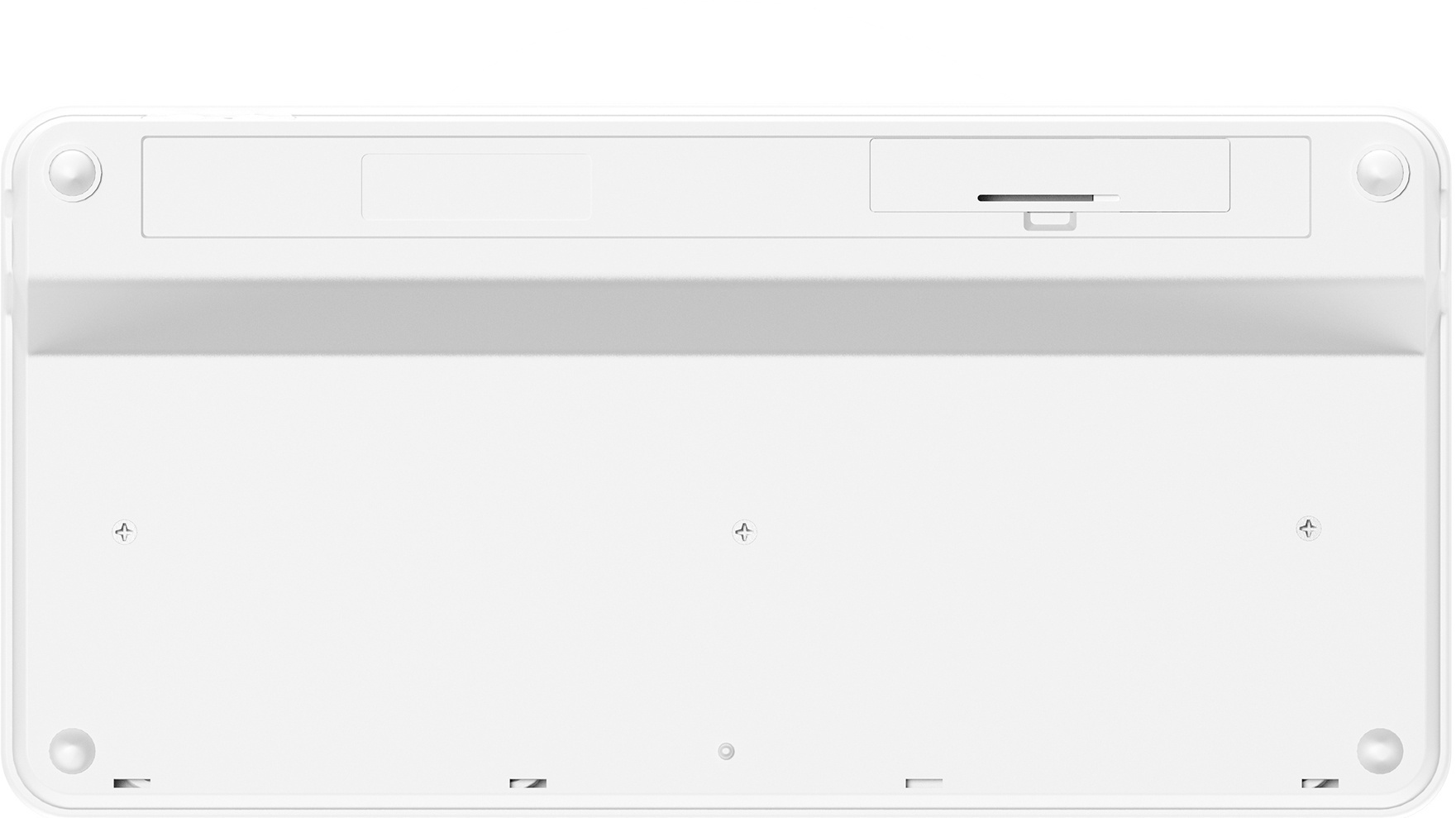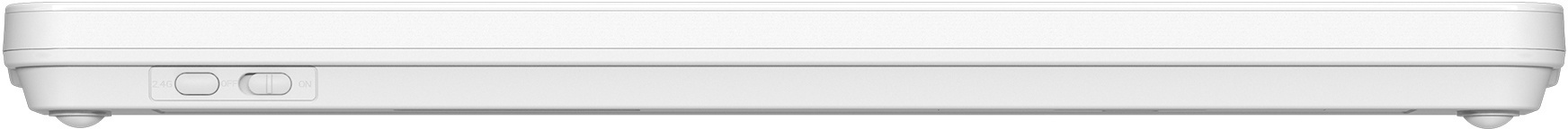 Работает через радиомодуль, вставил в USB — всё заработало без драйверов. Корпус белый, смотрится свежо, а покрытие не затирается. Автономность неплохая, за несколько недель уровень батареи почти не просел. Хорошее сочетание эстетики и удобства.