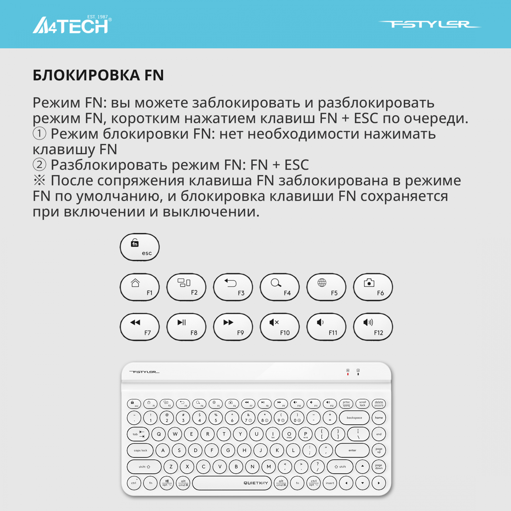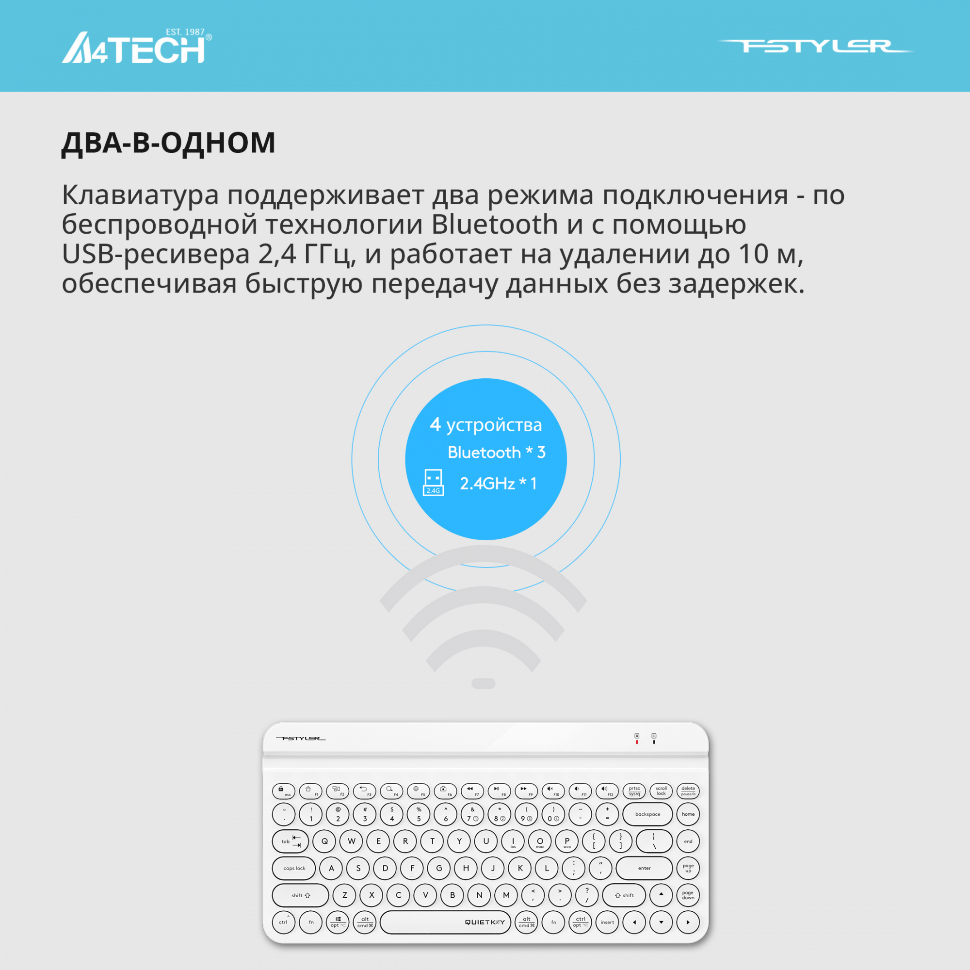 Клавиатура мембранная A4Tech - Fstyler FBK30, Беспроводная, Bluetooth, цвет белый, FBK30 WHITE