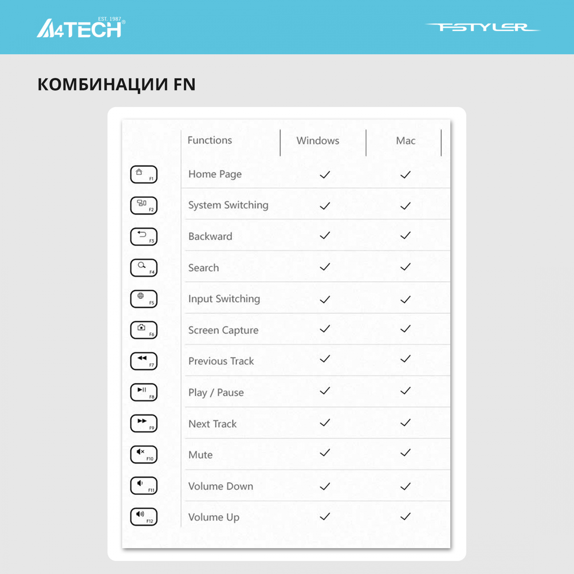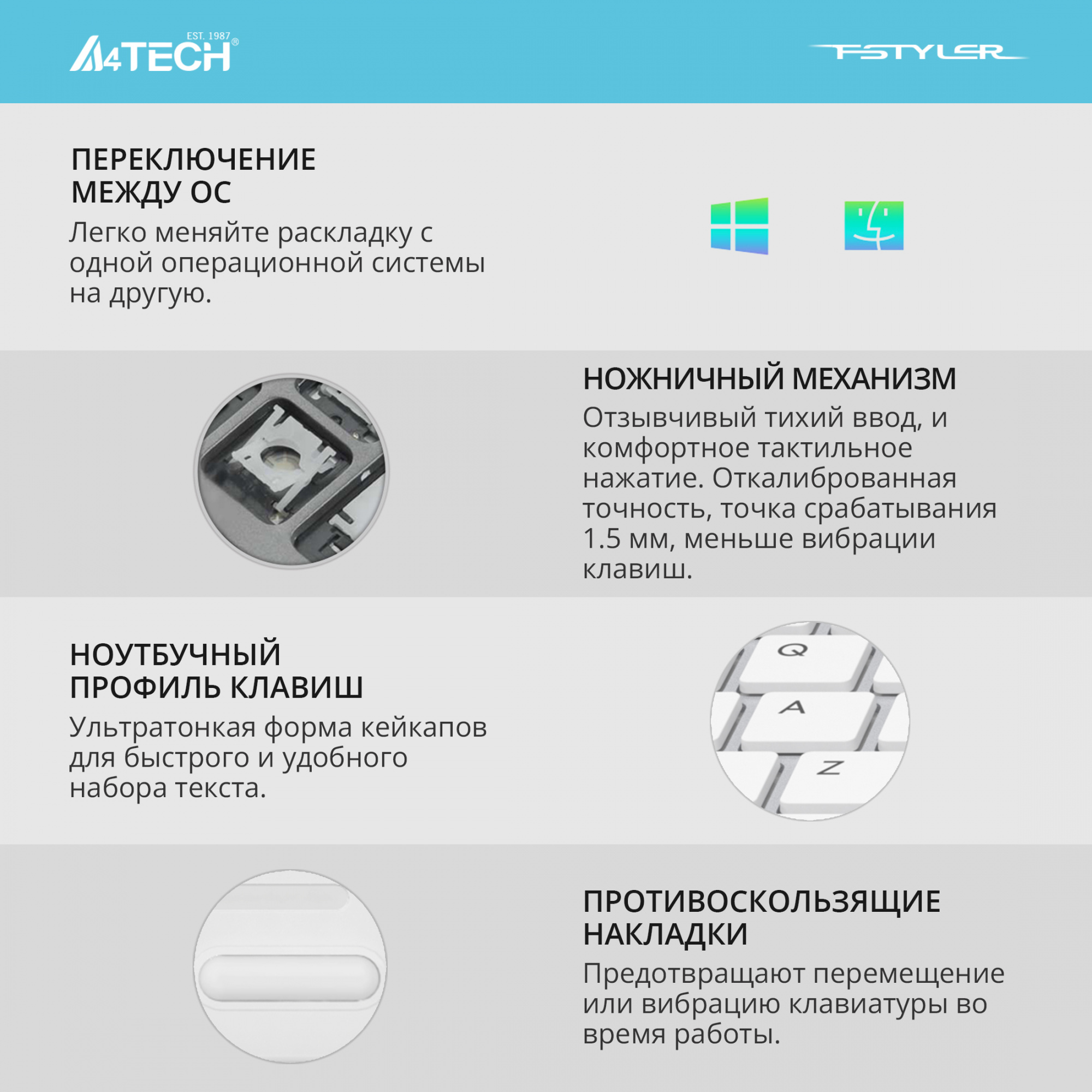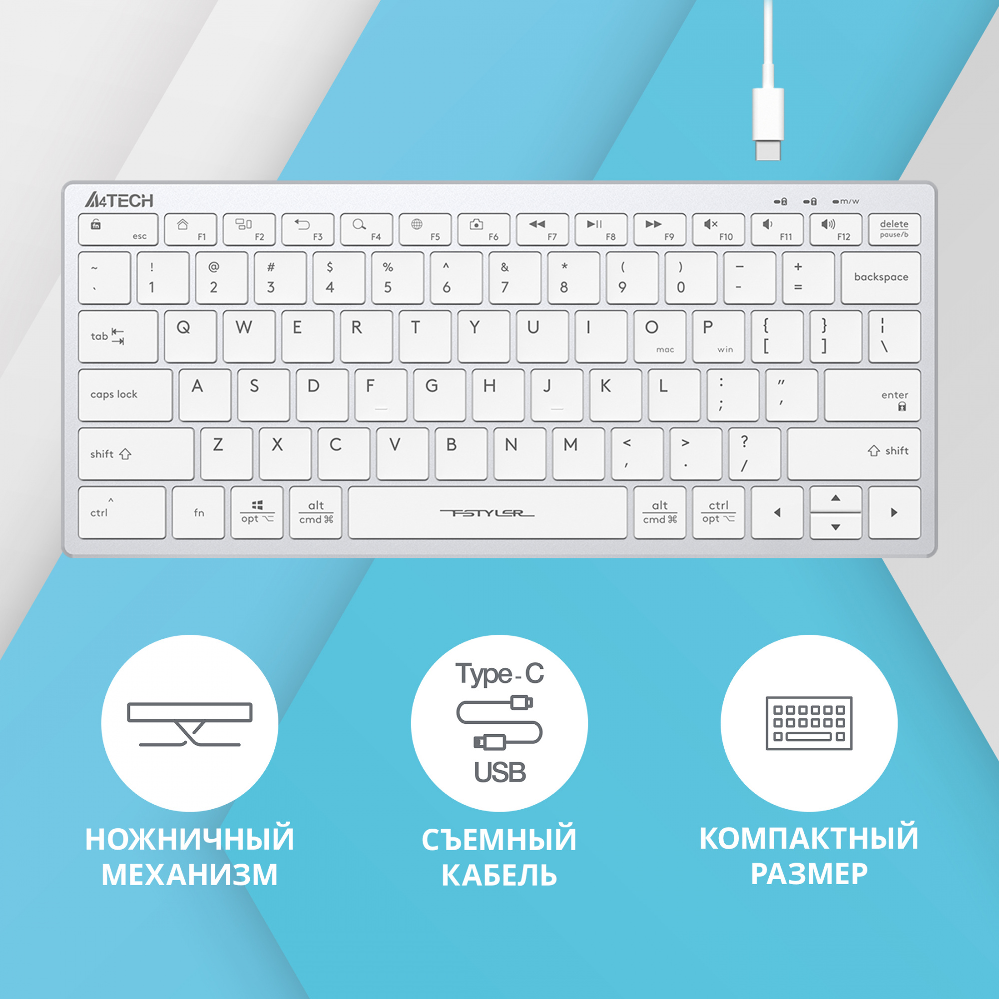 Клавиатура A4Tech - Fstyler FX51, Проводная, USB,waterproof, цвет белый, FX51 WHITE