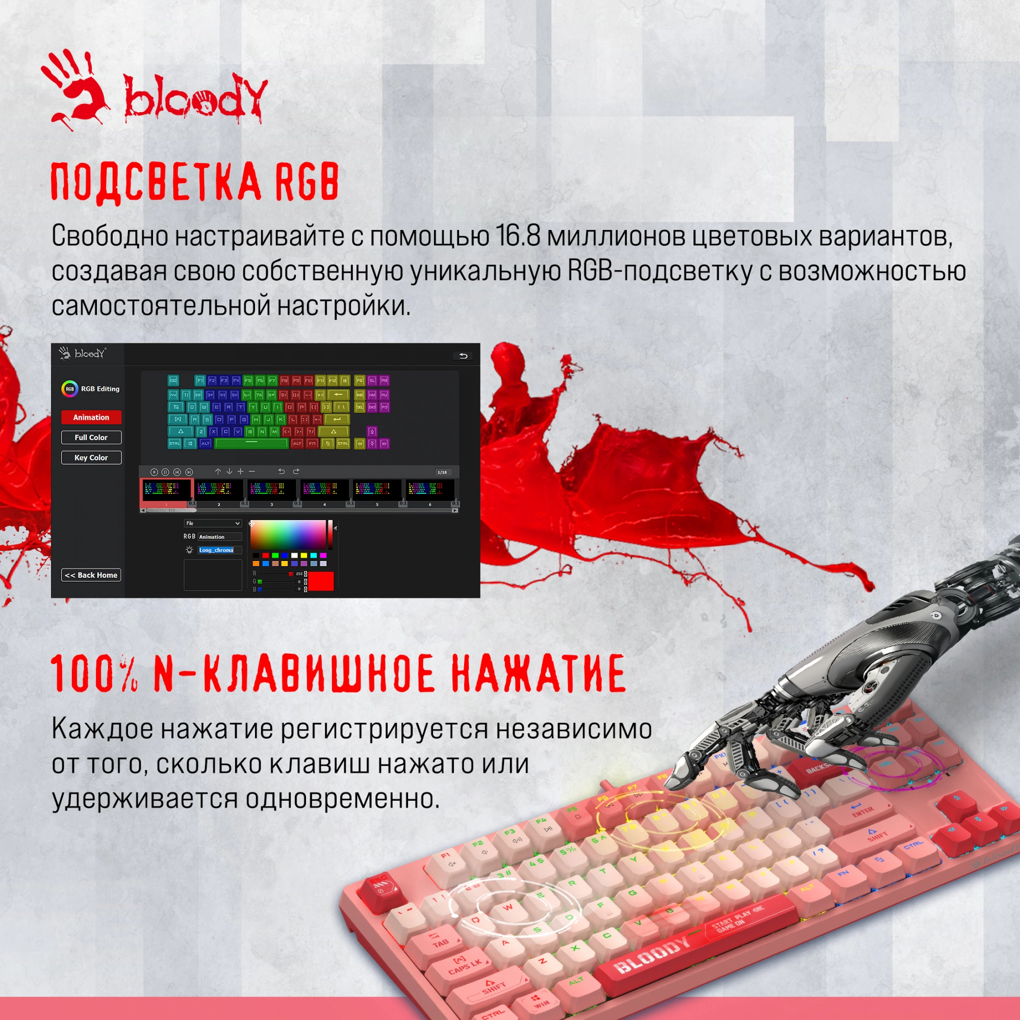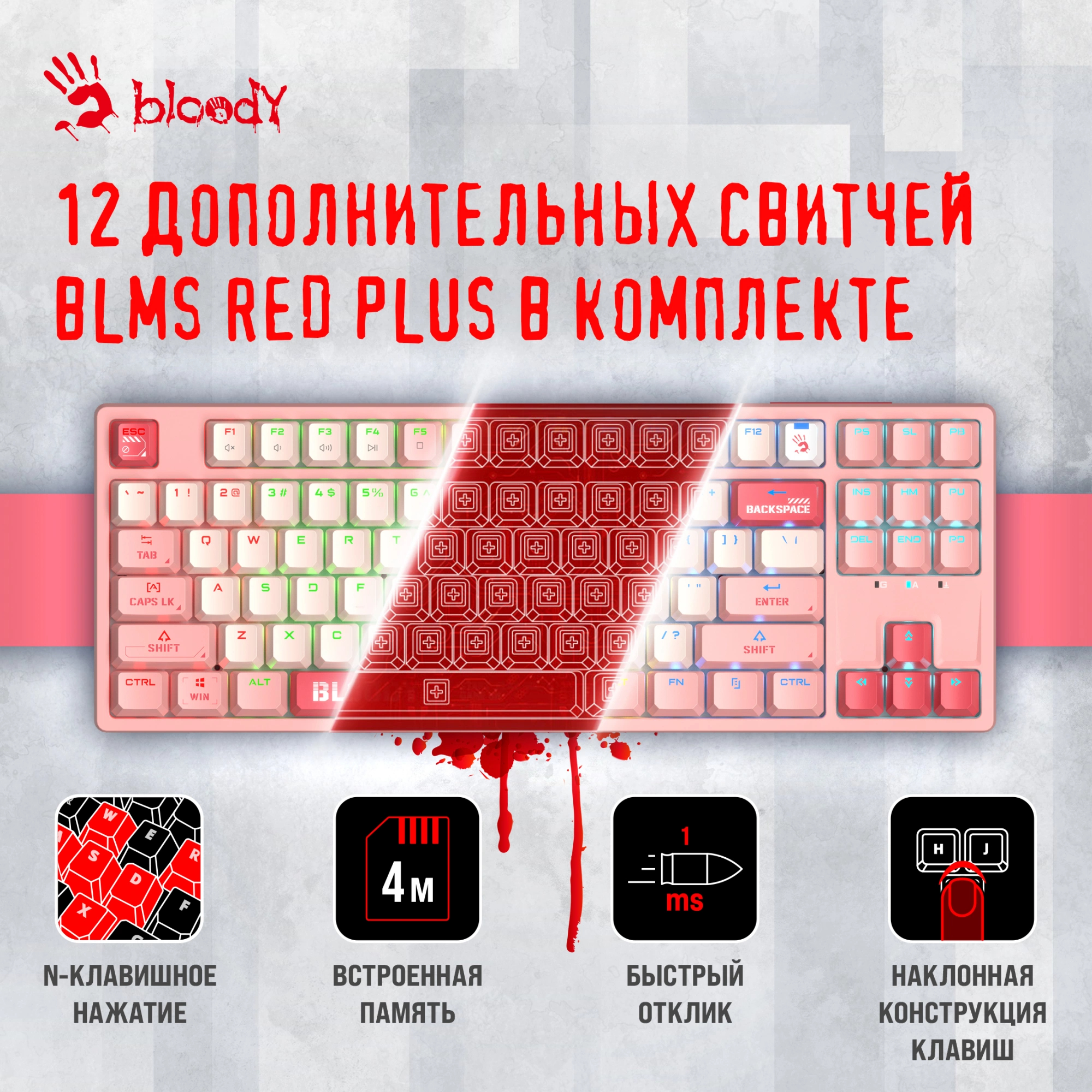 Выбрать товарыКлавиатура механическая A4Tech - Bloody S87 Energy, Проводная, USB, gaming, illumination keys, цвет розовый, S87 USB ENERGY PINK