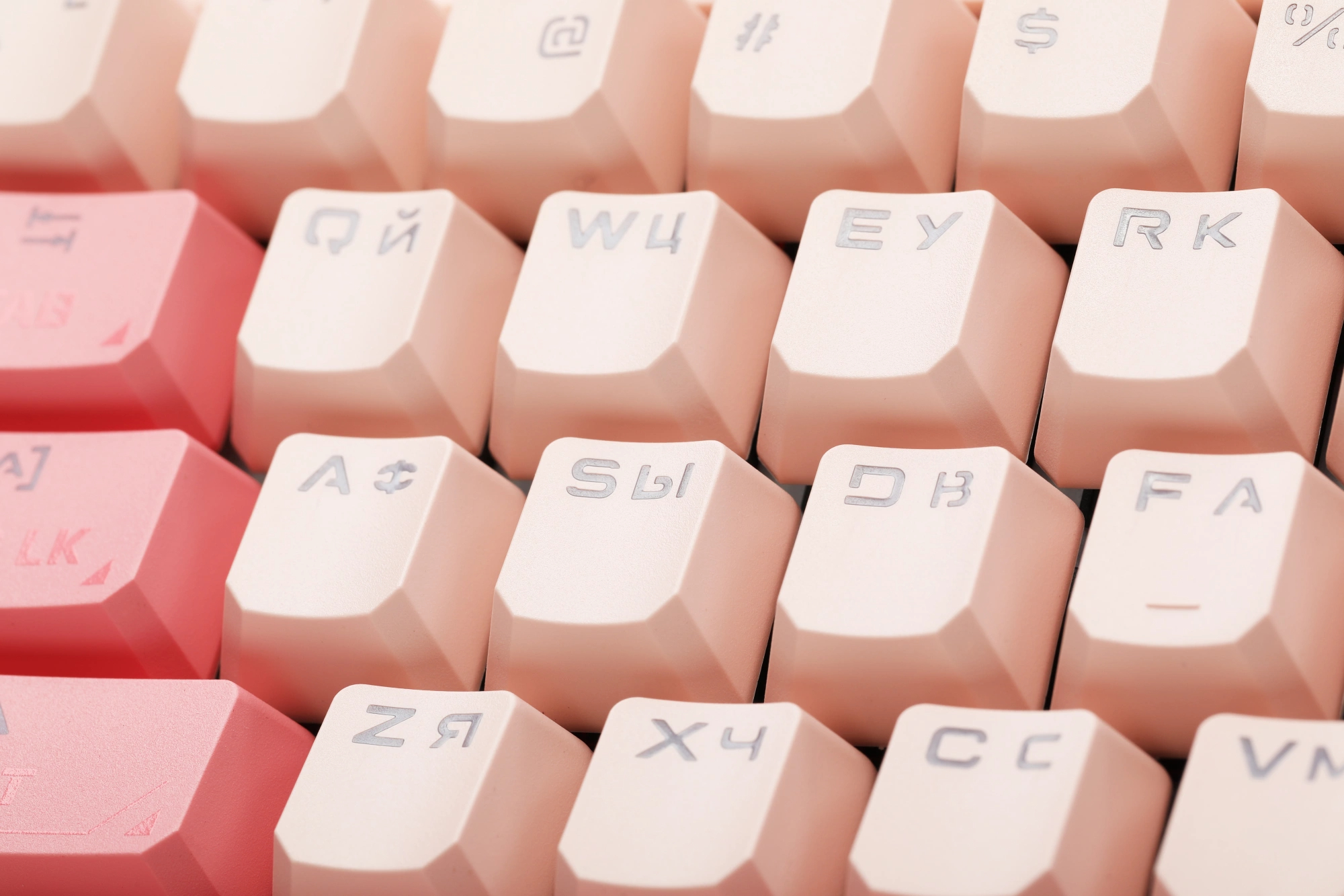 Хотелось розового дизайна — тут всё совпало. Механические переключатели, форм-фактор TKL. Подсветка регулируется, можно сделать приглушённой. При подключении не требуются драйверы, сразу распознаётся.