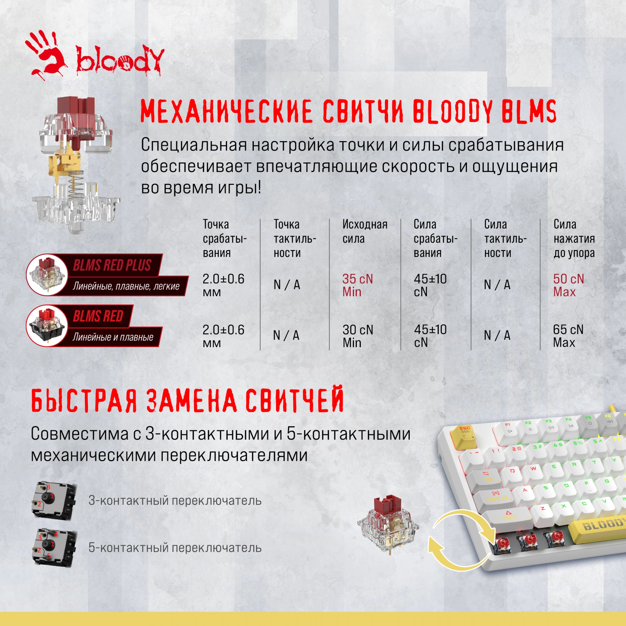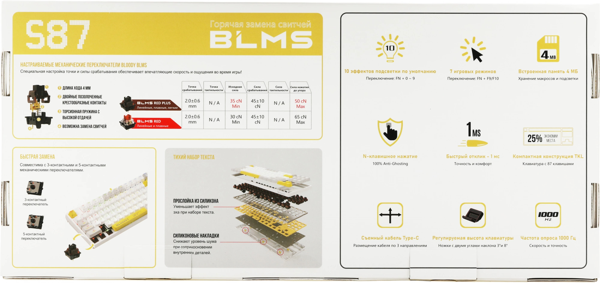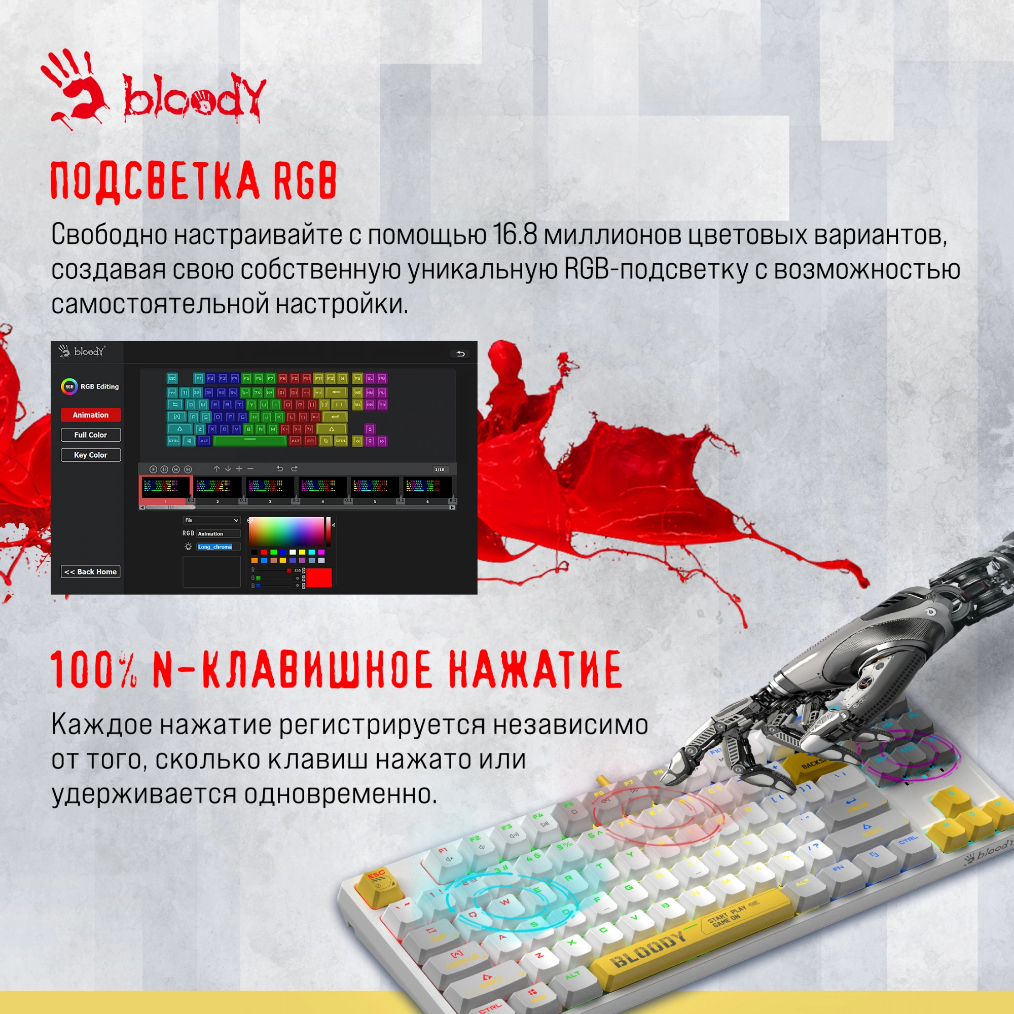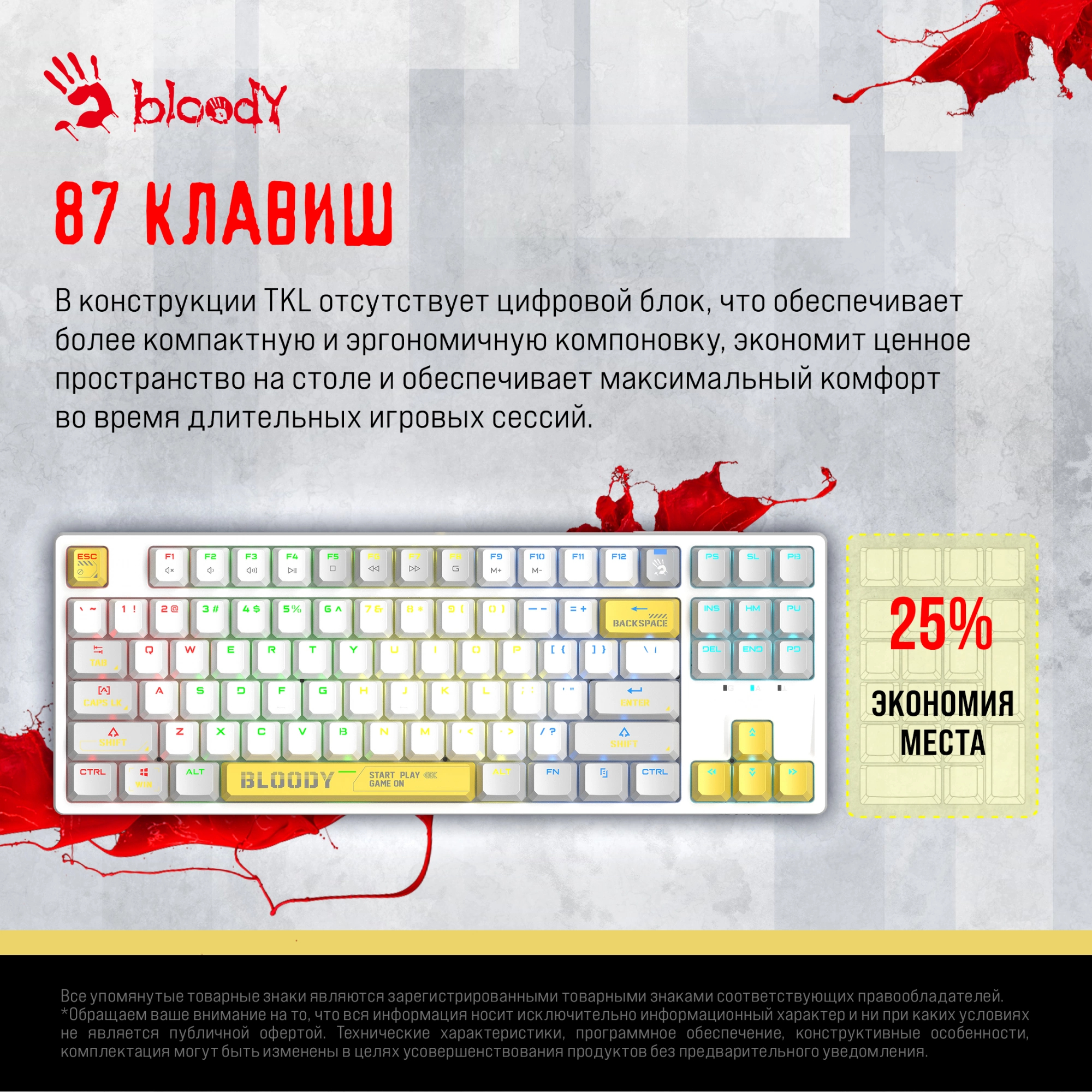 Клавиатура механическая A4Tech - Bloody S87 Energy, Проводная, USB, gaming, illumination keys, цвет белый, S87 USB ENERGY WHITE