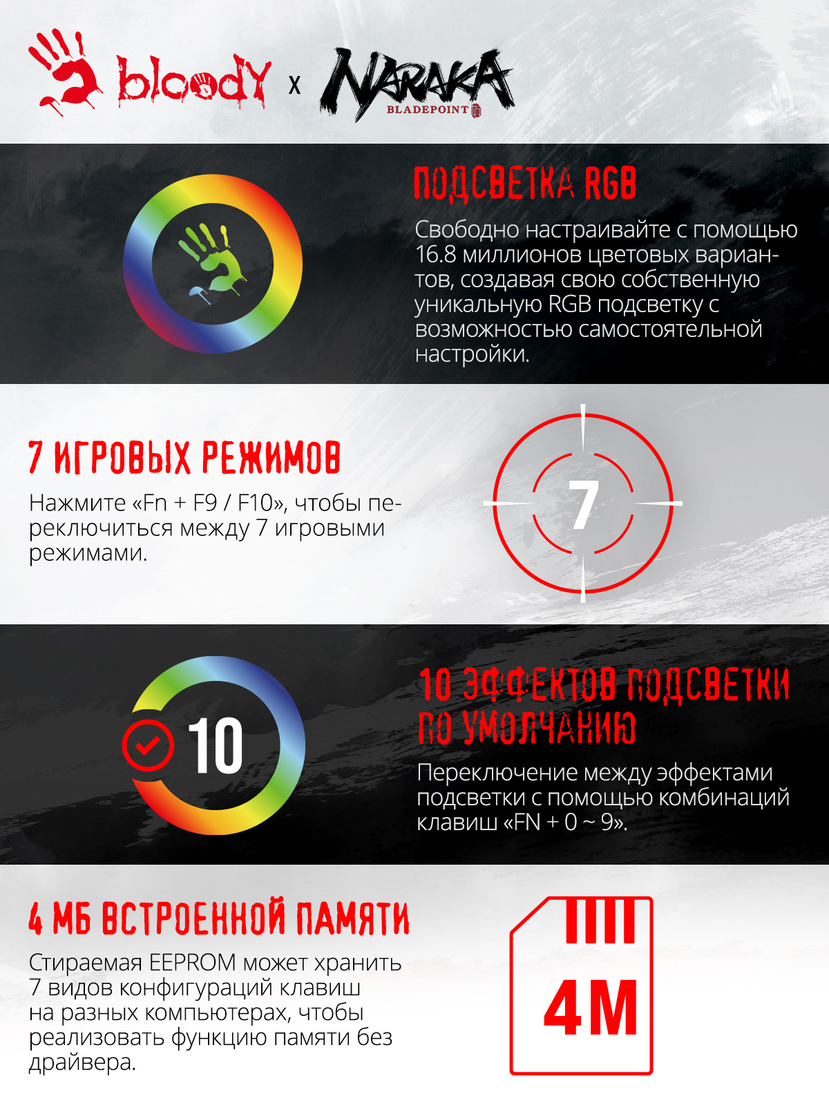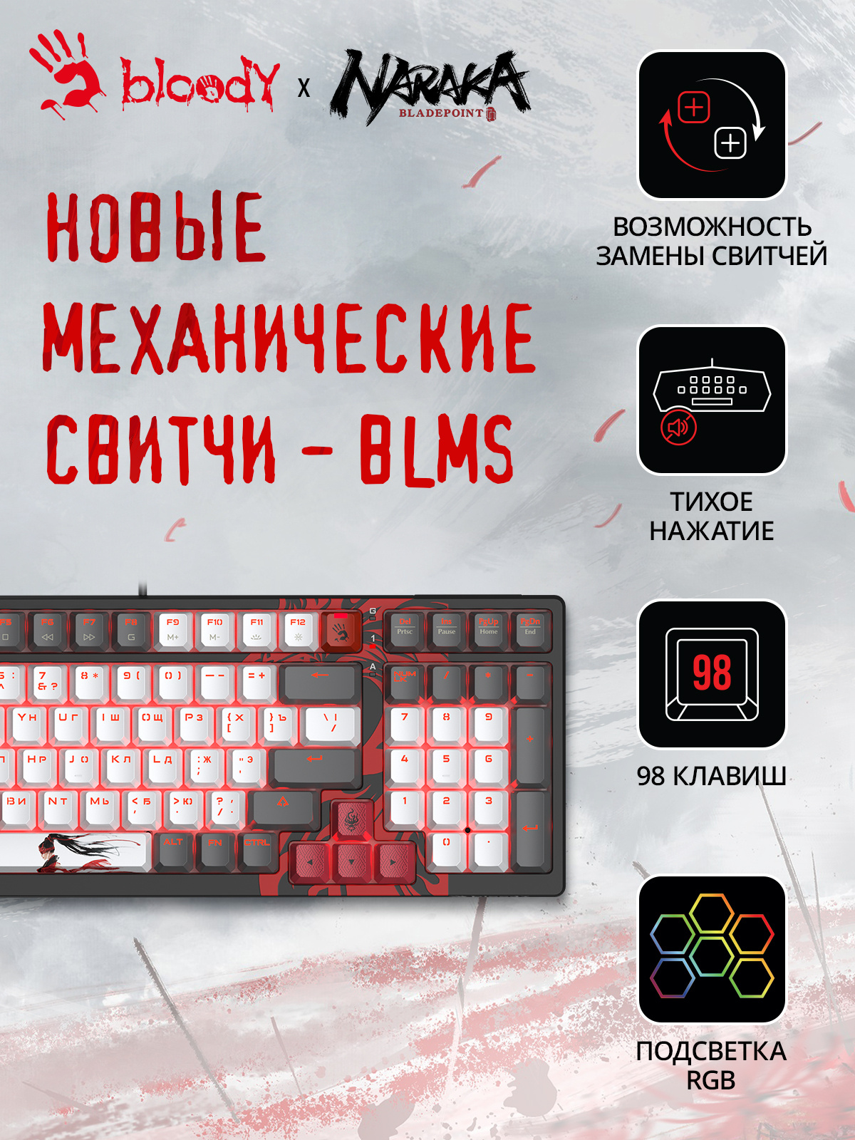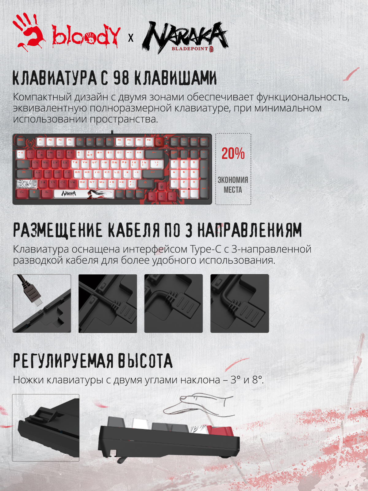 Клавиатура механическая A4Tech Bloody S98 Naraka Проводная чёрный, S98 NARAKA