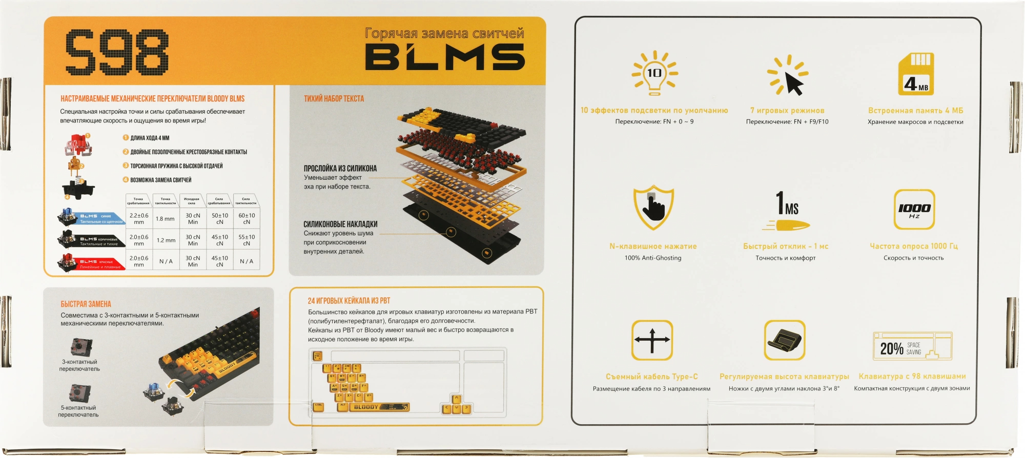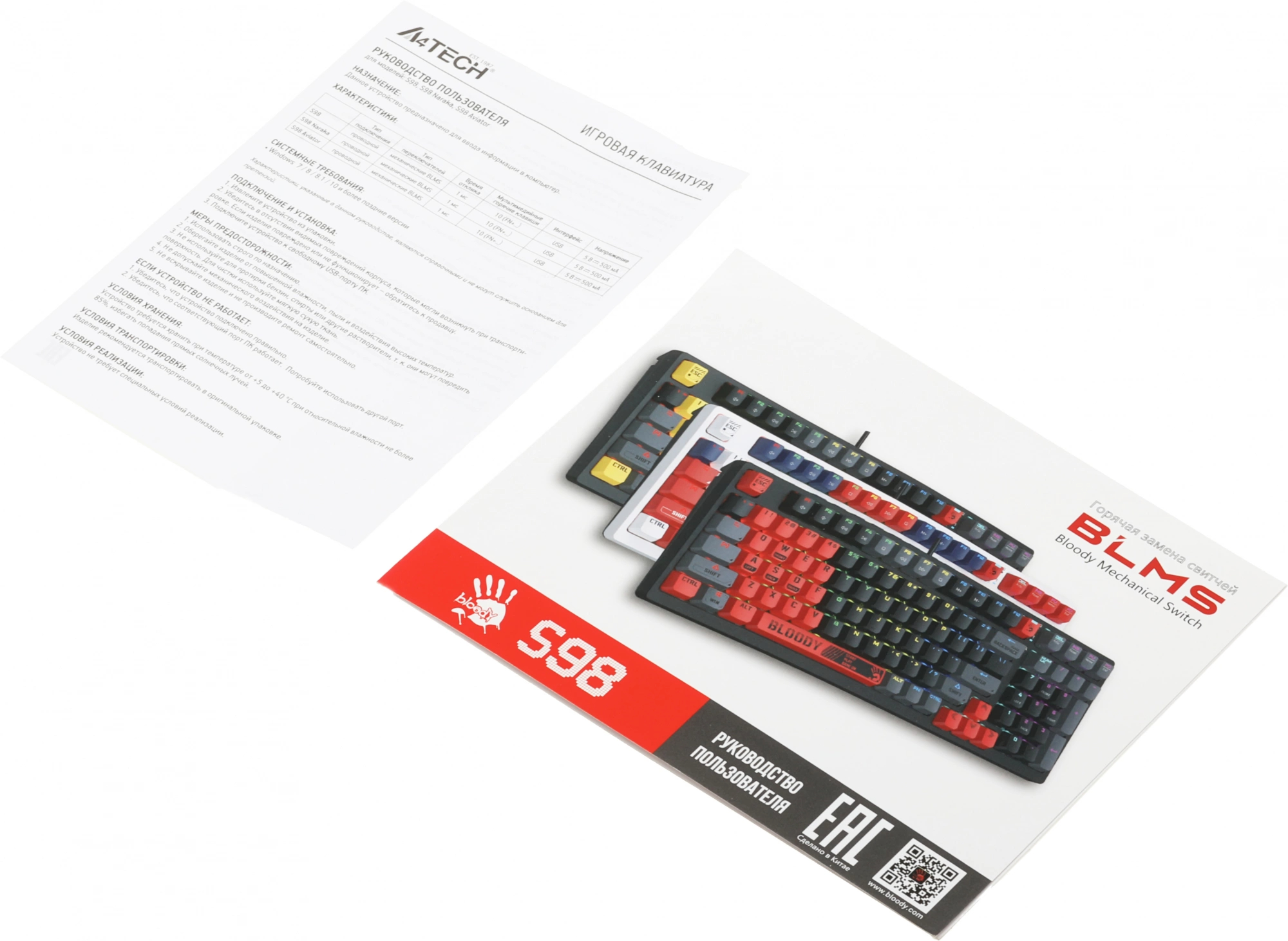 Клавиатура механическая A4Tech - Bloody S98, Проводная, USB, gaming, illumination keysnum pad, цвет серый, SPORTS LIME