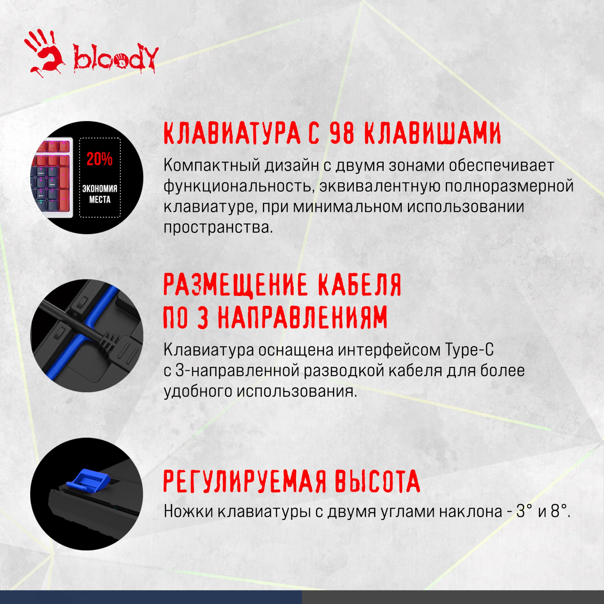Клавиатура механическая A4Tech - Bloody S98, Проводная, USB, gaming, illumination keysnum pad, цвет белый, SPORTS NAVY