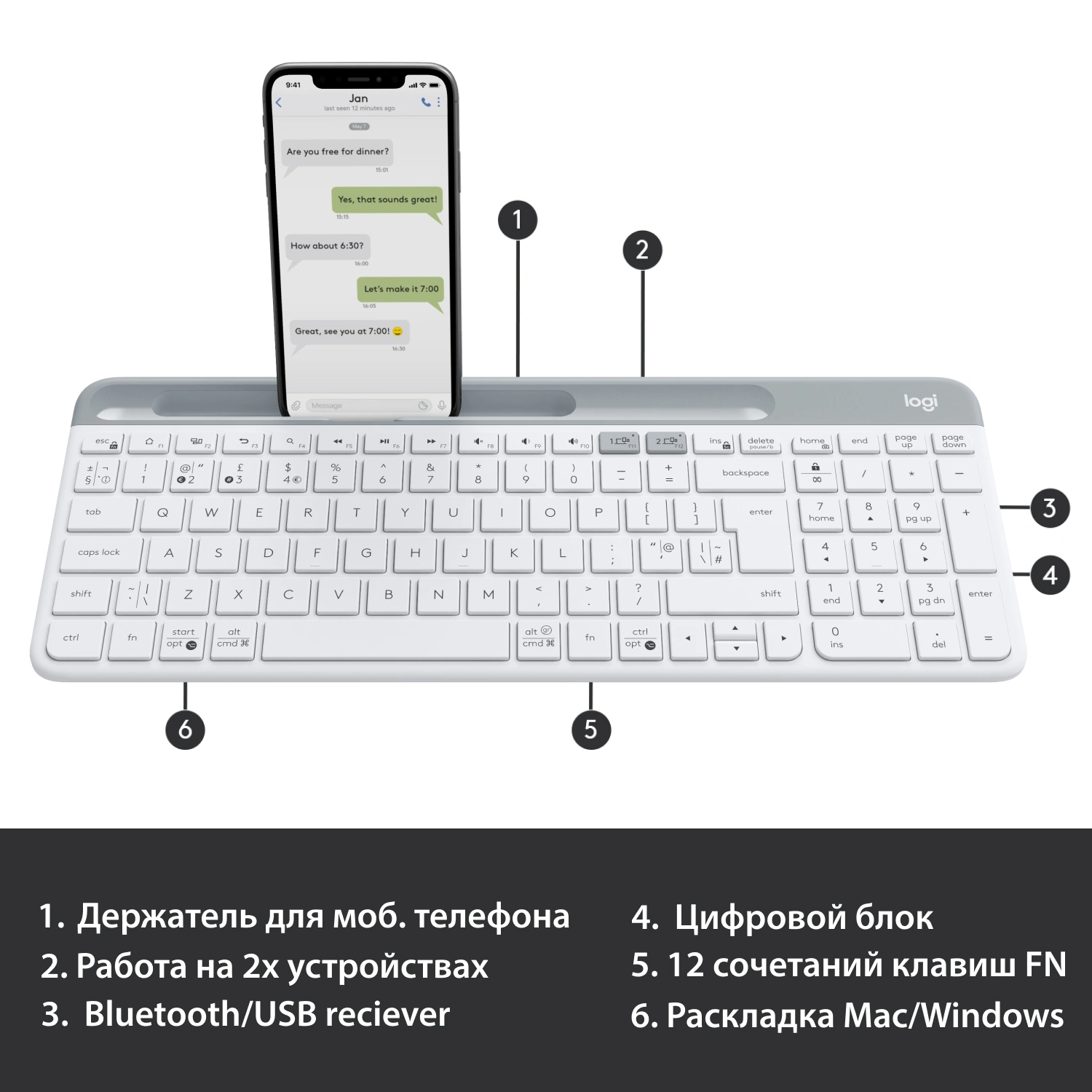 Клавиатура Logitech - K580, Беспроводная, 10 метров, USBnum pad, цвет белый, 920-009209