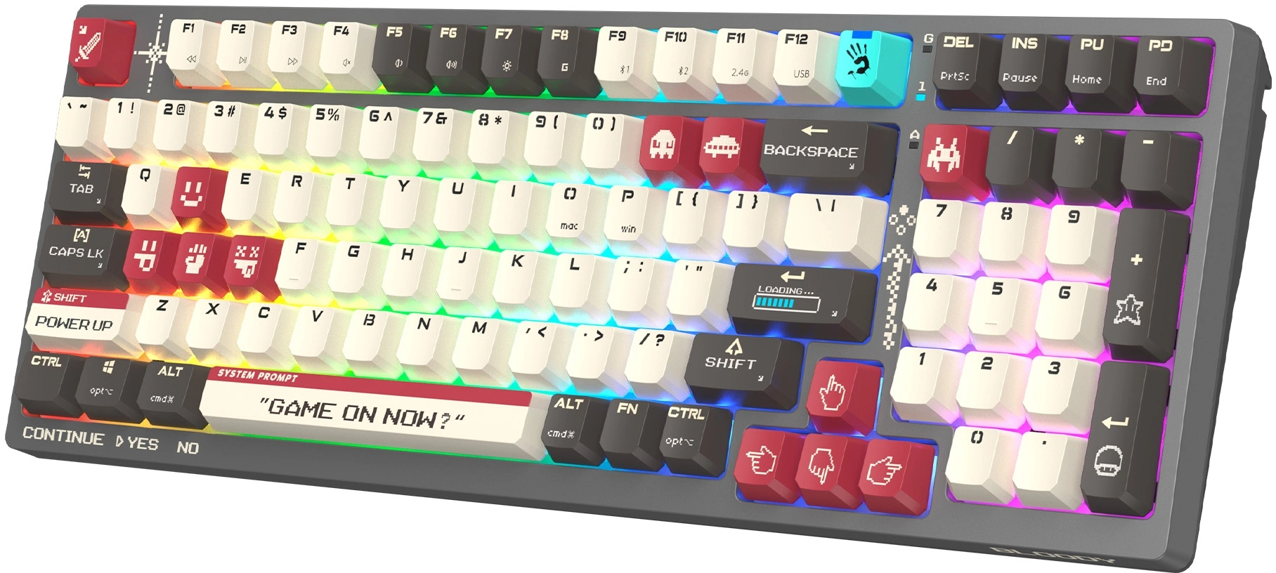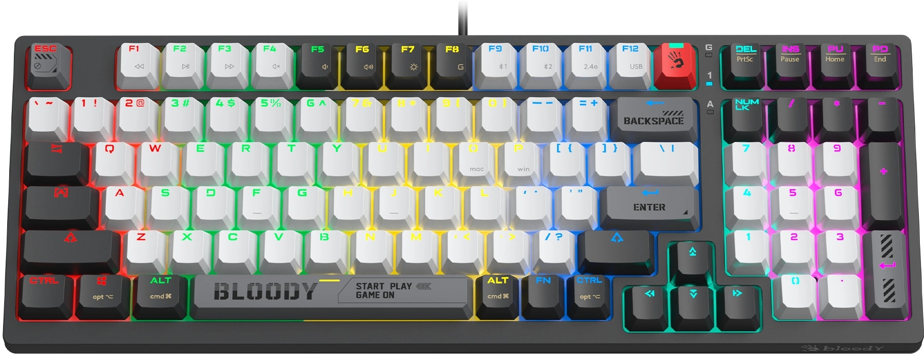 Выбрать товарыКлавиатура механическая A4Tech - Bloody WS98, Беспроводная, 10 метров, USB, gaming, illumination keysnum pad, цвет чёрно-белый, WS98