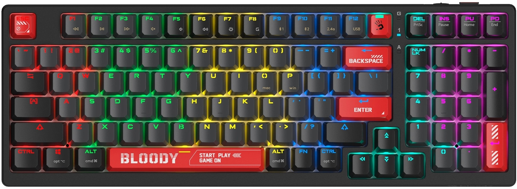 Клавиатура механическая A4Tech - Bloody WS98, Беспроводная, 10 метров, USB, gaming, illumination keysnum pad, цвет чёрно-белый, WS98