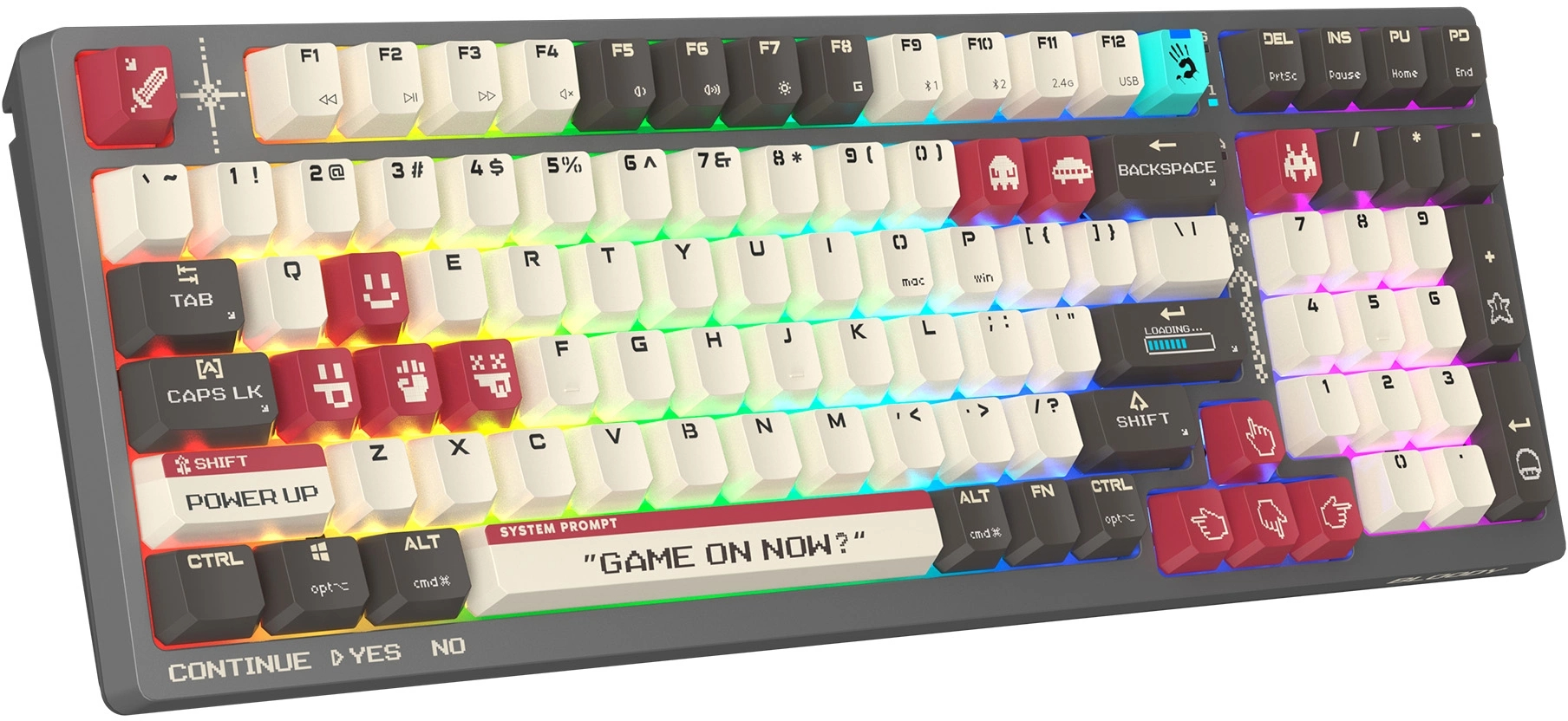 Разноцветное исполнение: корпус чёрный, клавиши белые, придаёт уникальный стиль. Механические переключатели с отменной скоростью. Беспроводное подключение повышает мобильность.