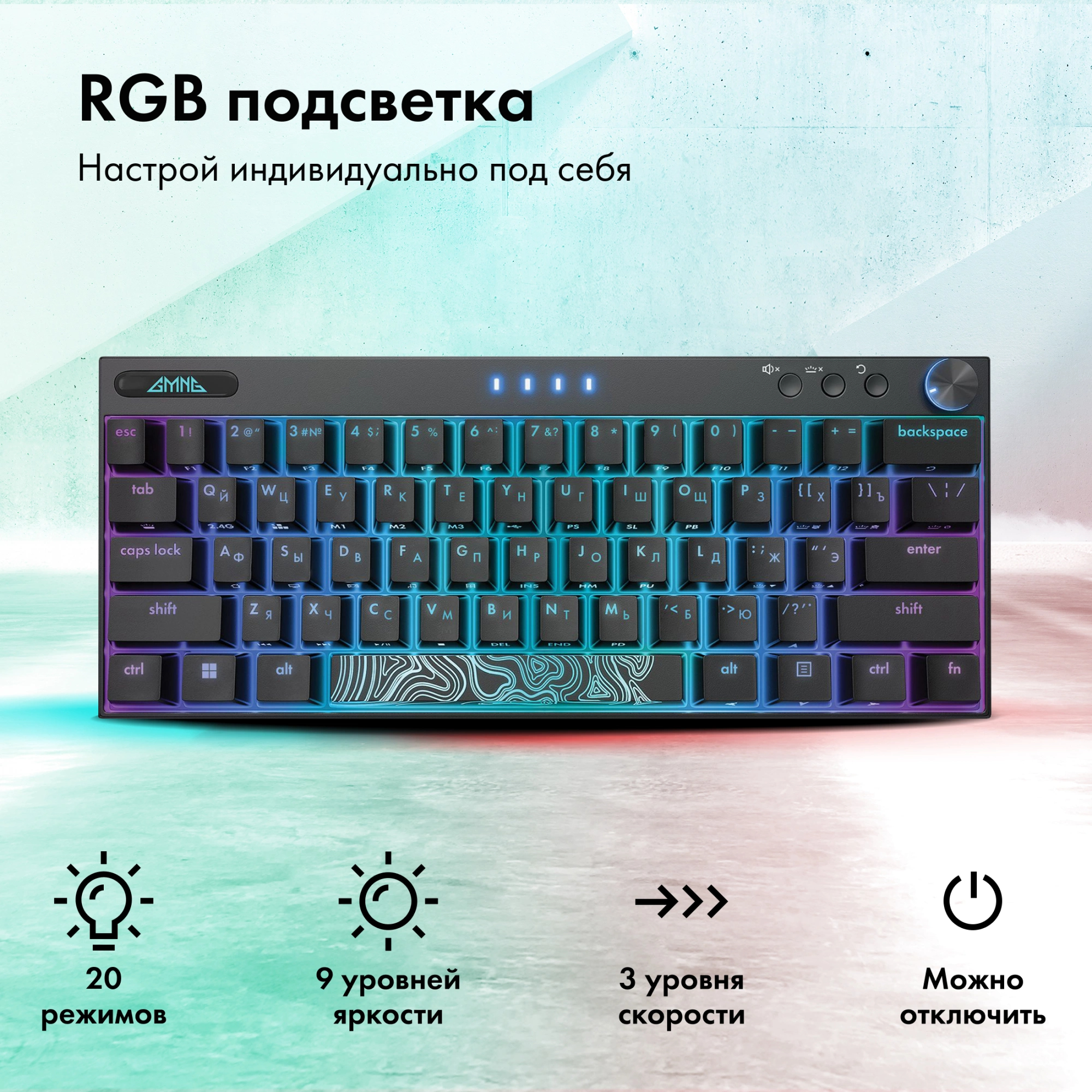 Клавиатура механическая GMNG - GG-KB500XW, Беспроводная, 10 метров, USB, gaming, illumination keys, цвет чёрный, 1910516