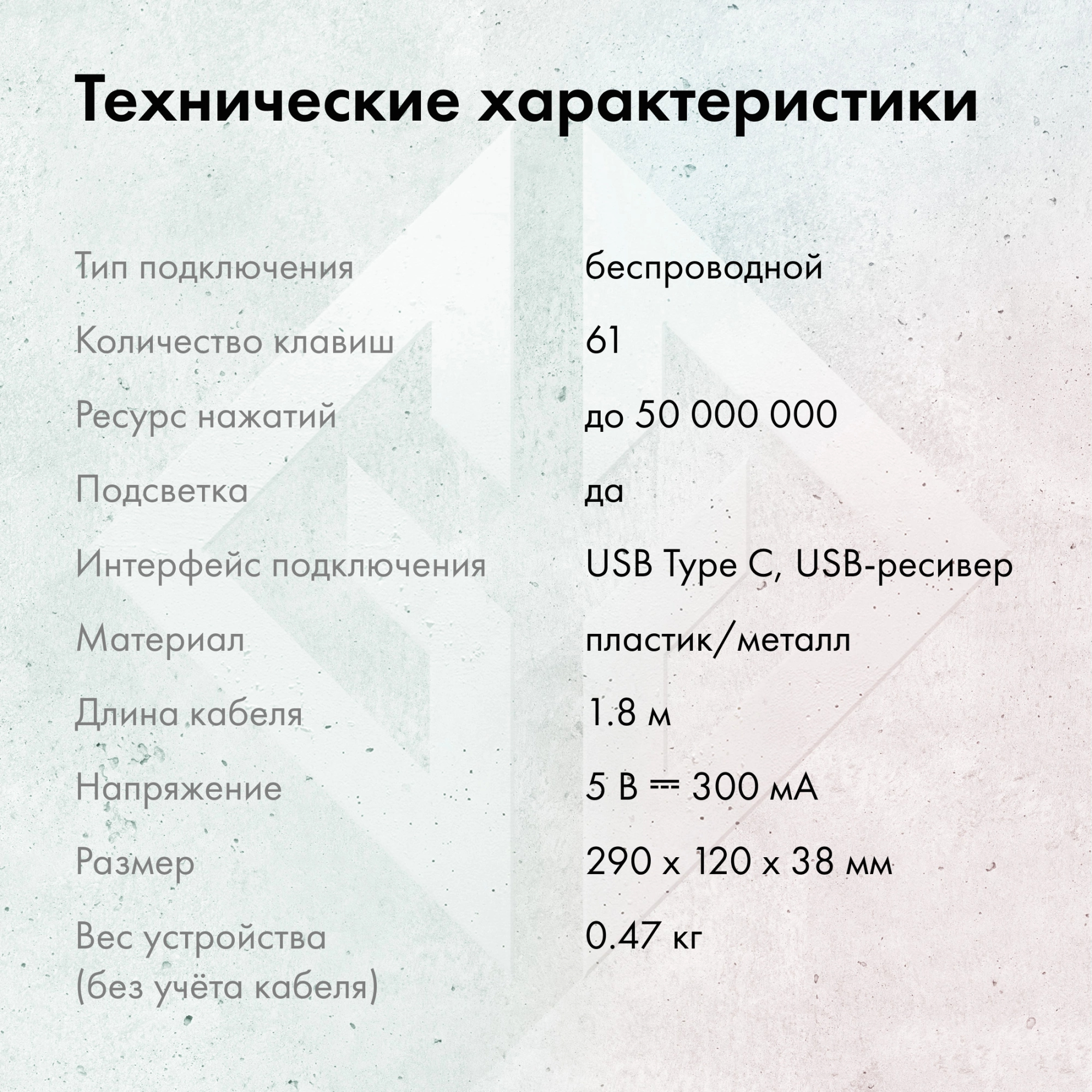 Геймерское решение с механическими свитчами, обеспечивающими точный отклик и яркую подсветку. Беспроводная связь даёт свободу от проводов, аккумулятор держит заряд на протяжении долгих сессий.
