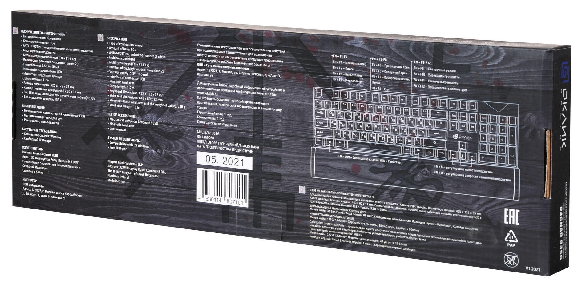 Клавиатура механическая OKLICK - 935G RAGNAR, Проводная, USB, gaming, illumination keysnum pad, цвет чёрный, 1460068