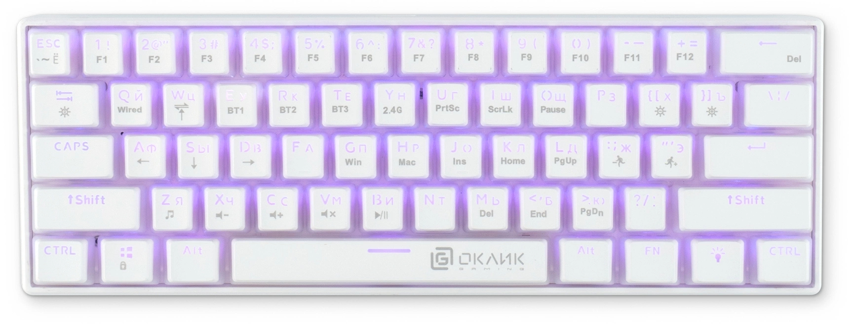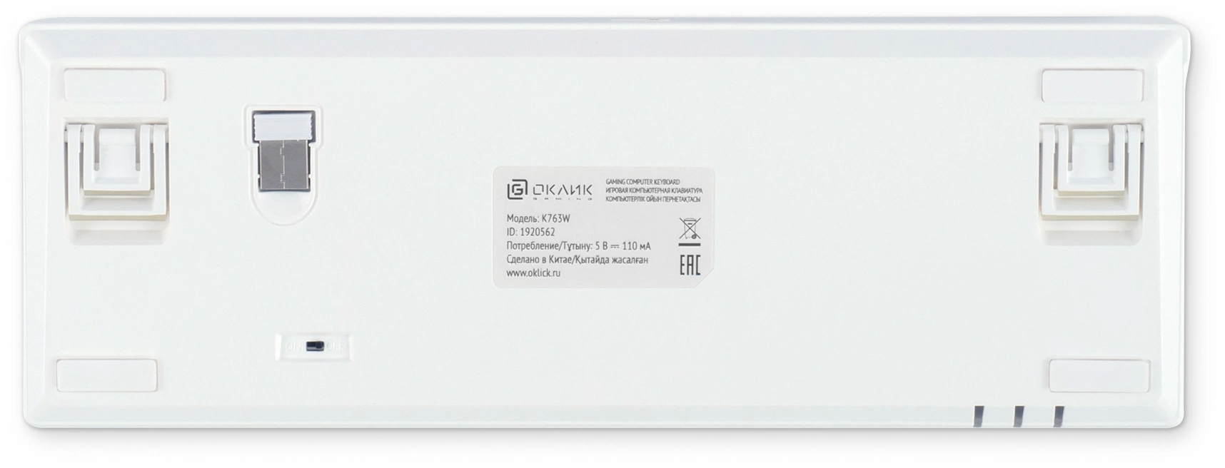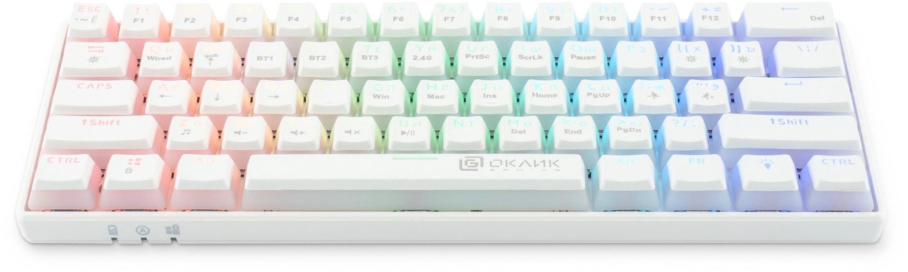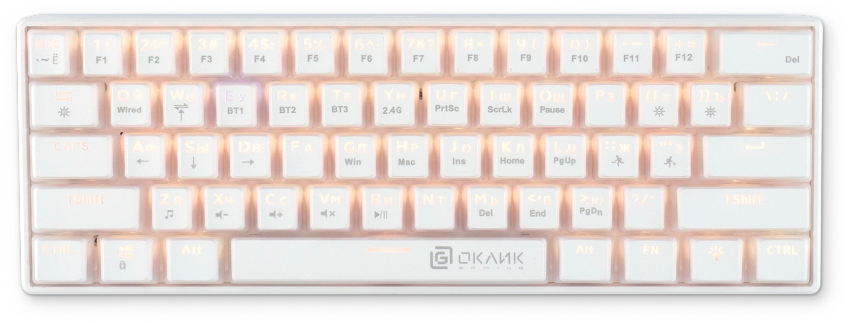 Клавиатура механическая OKLICK - K763W, Беспроводная, 10 метров, USB, gaming, illumination keys, цвет белый, 1920562