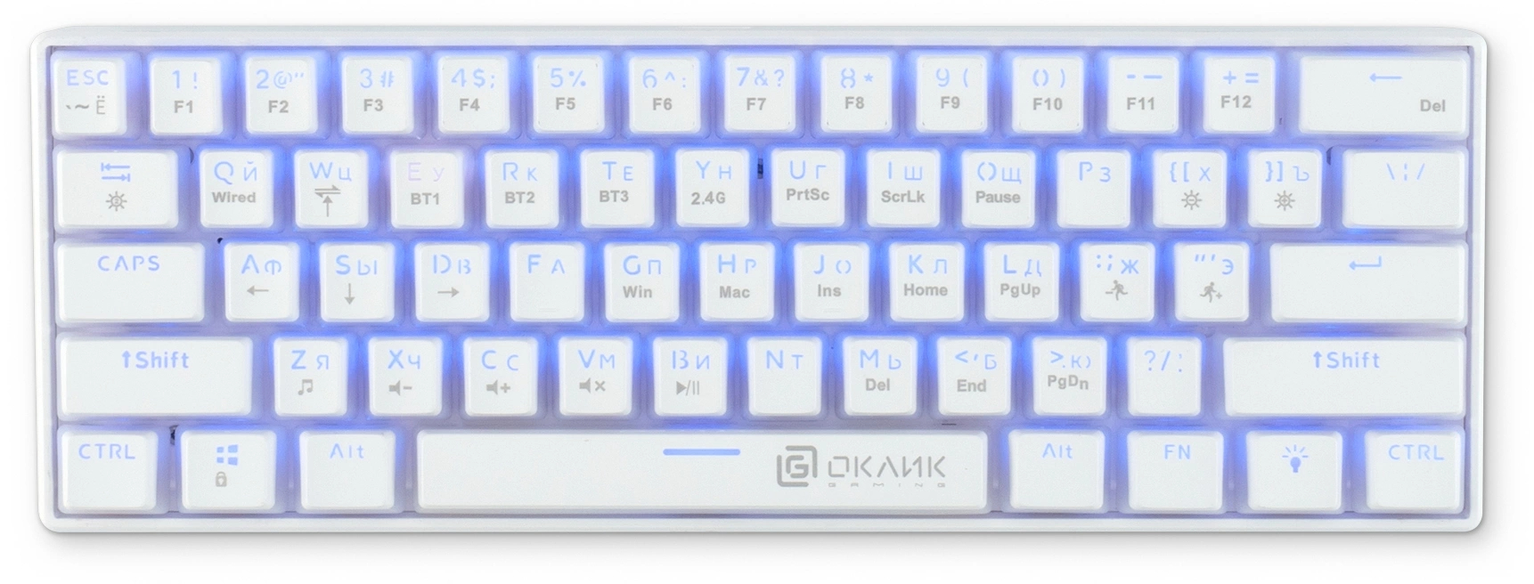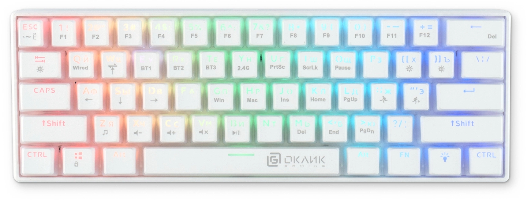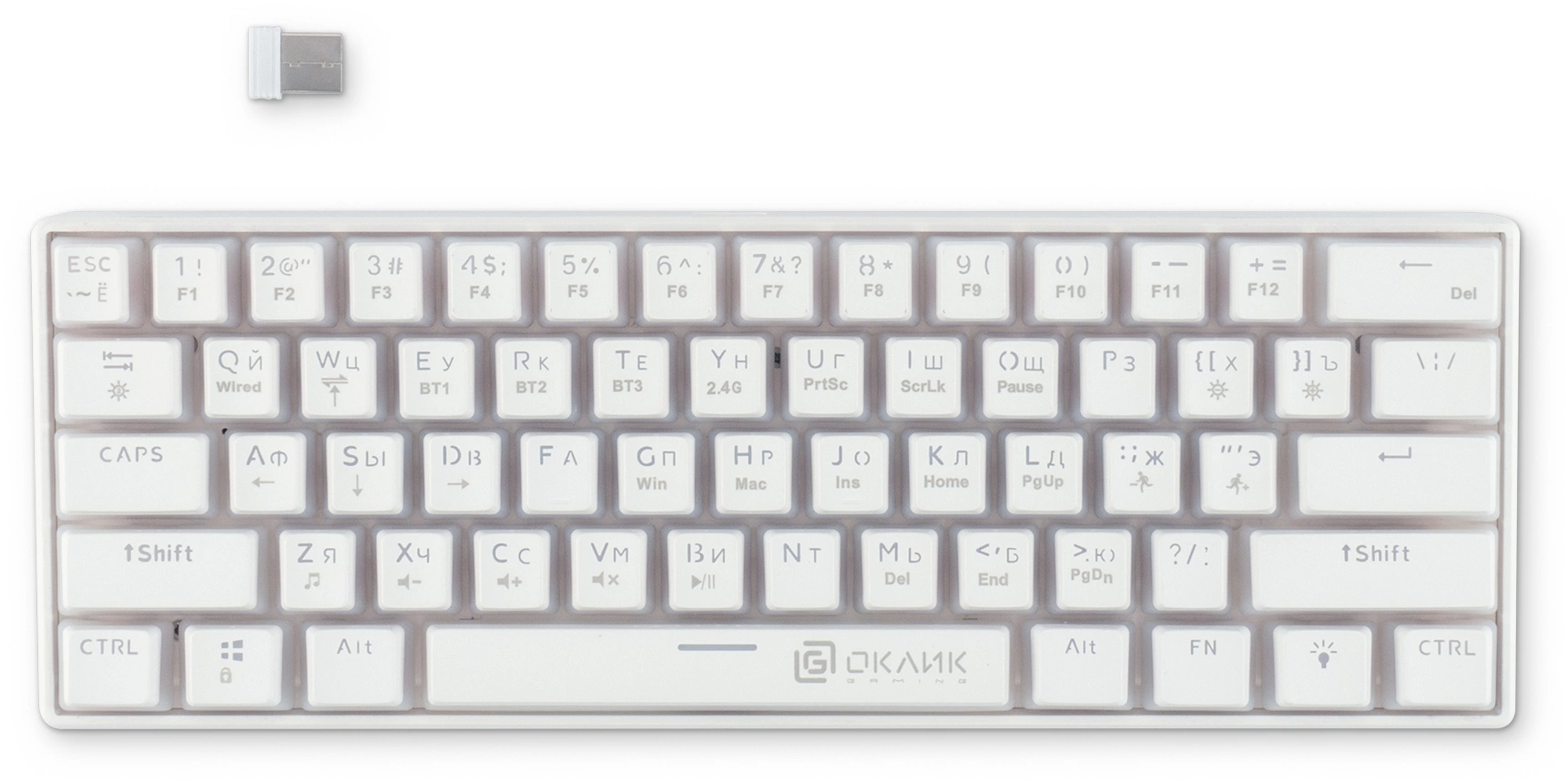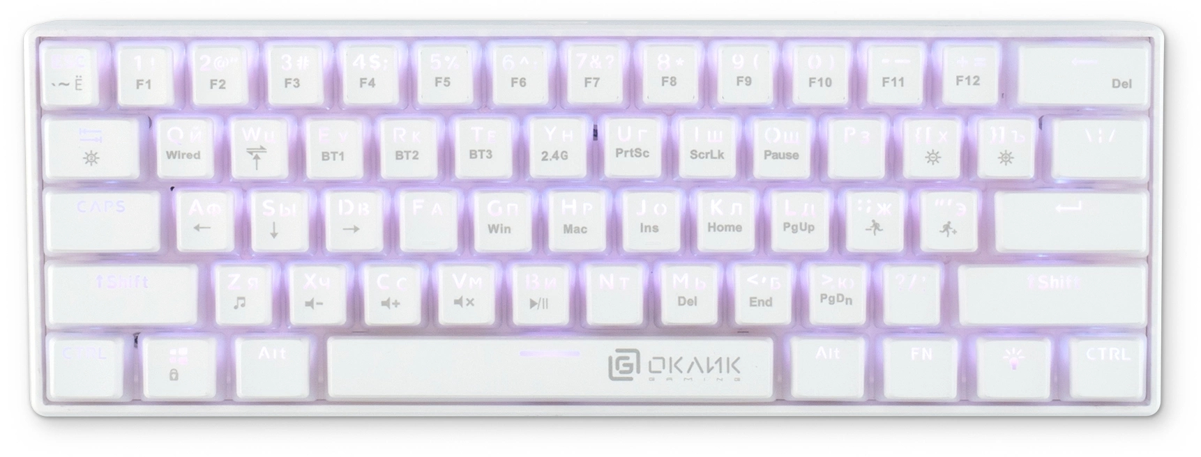 Клавиатура механическая OKLICK - K763W, Беспроводная, 10 метров, USB, gaming, illumination keys, цвет белый, 1920562