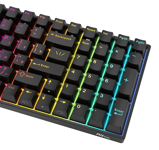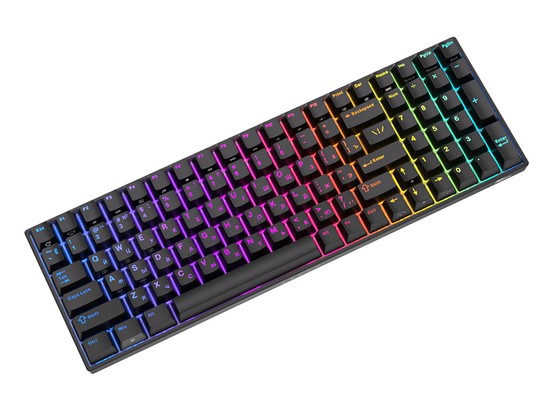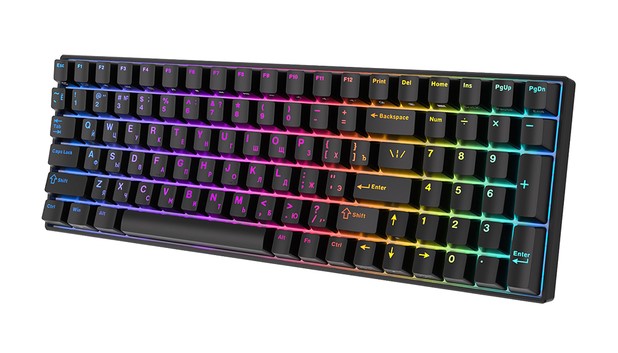 Механическая беспроводная клавиатура RK100 с RGB-подсветкой сочетает компактность и тактильный отклик. Переключатели типа Blue обеспечивают чёткий щелчок при каждом нажатии.