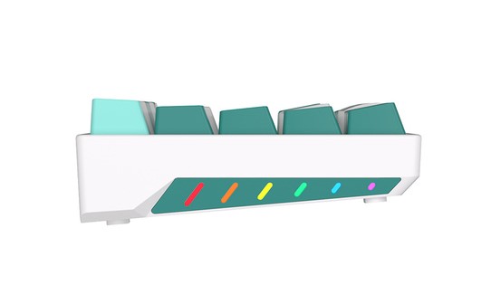 71-клавишная раскладка, Bluetooth/радио, цвет бело-зелёный, механические переключатели. Аккумулятор внутри, можно использовать и в проводном режиме.