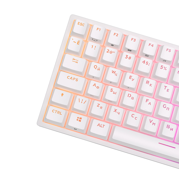 Механическая клавиатура с компактной раскладкой, не занимая много места на столе. Переключатели обеспечивают чёткий отклик, приятный для набора текста и игр. Подсветка настраивается, позволяя работать при слабом свете.